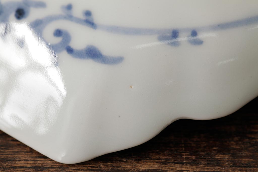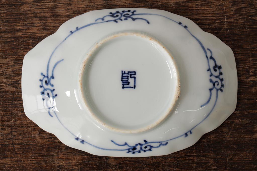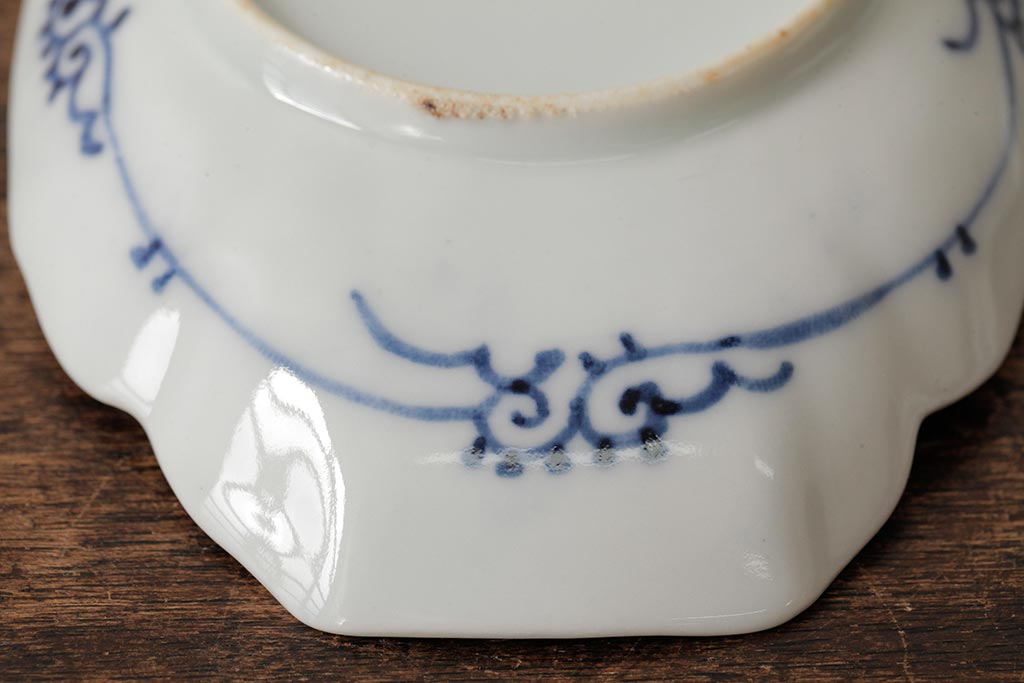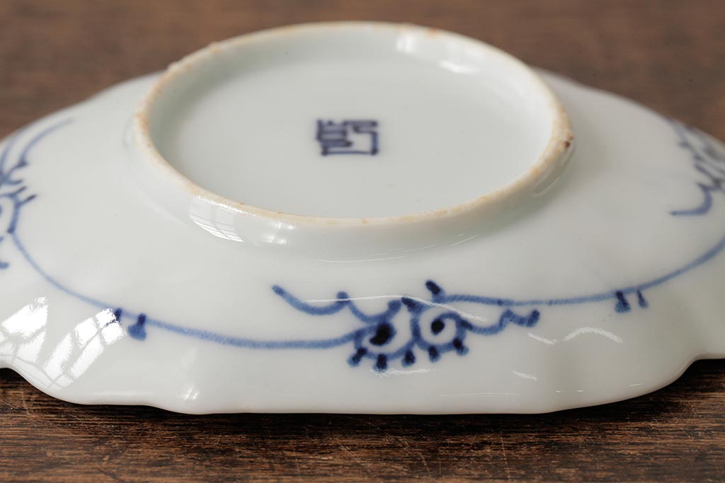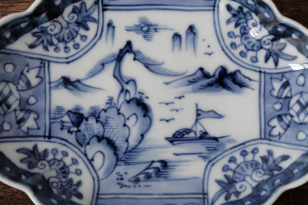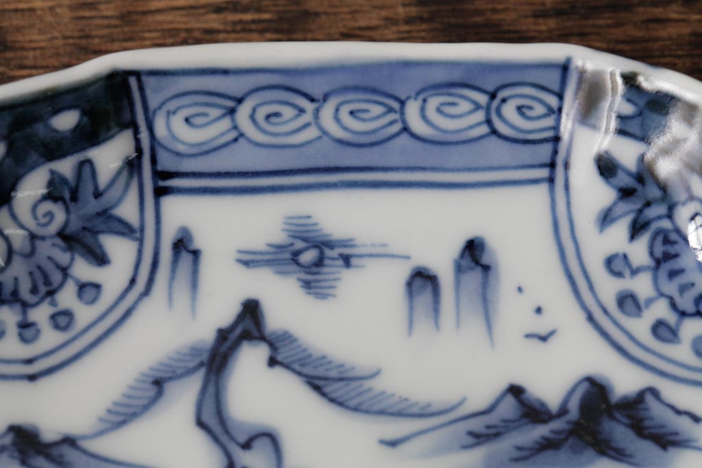 アンティーク雑貨 古民具・骨董 江戸期 古伊万里 山水図染付変形皿3枚セット(和食器)(R-042472)