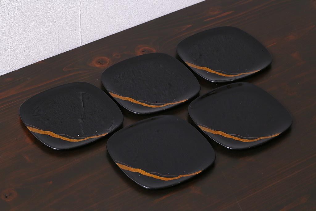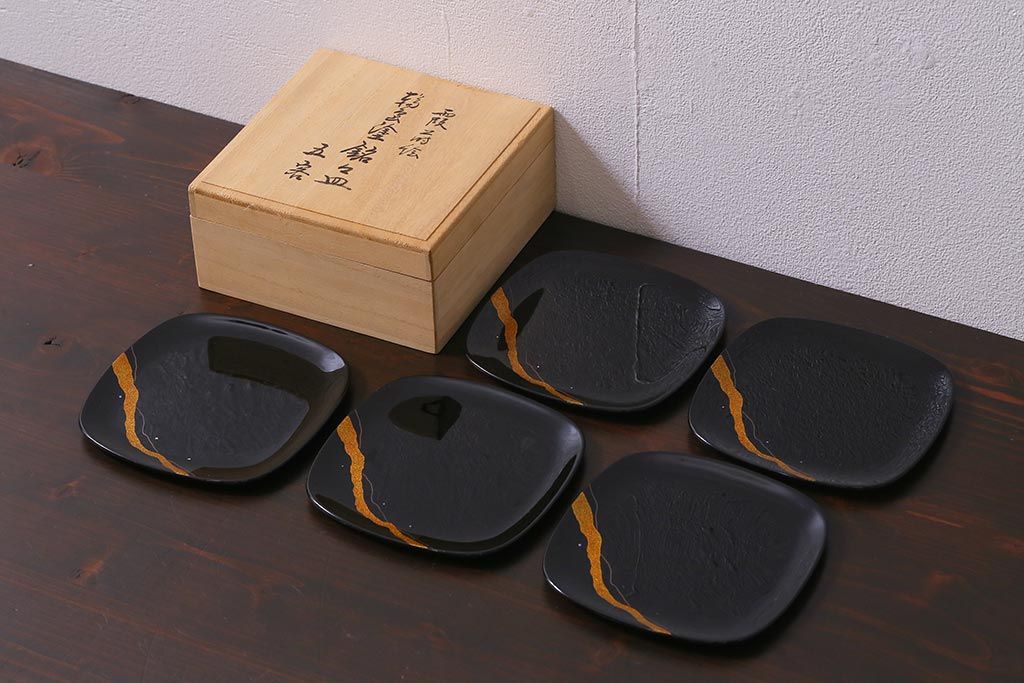 ラフジュ工房> 骨董・美術品> 骨董-漆器 > 未使用 輪島塗 4.6寸霞蒔絵銘々皿5客(木製漆器)(R-042363)