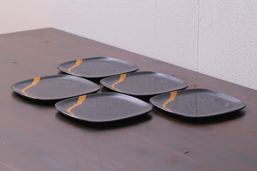 ラフジュ工房> 和食器・茶道具> 皿 > 未使用 輪島塗 4.6寸霞蒔絵銘々皿5客(木製漆器)(R-042363)