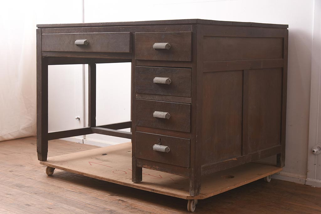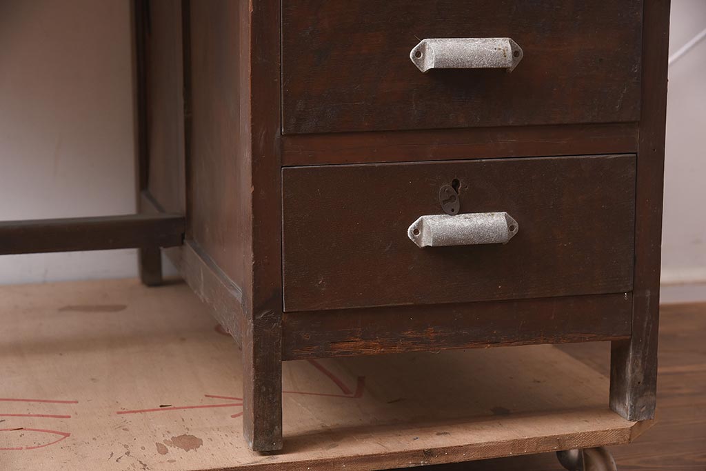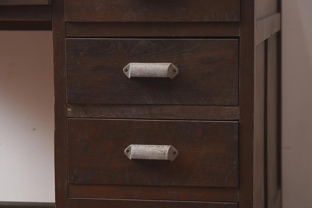 アンティーク家具 栗材 落ち着きのあるレトロスタイルにおすすめな木製の片袖デスク(ワークデスク、机)(R-042506)です。