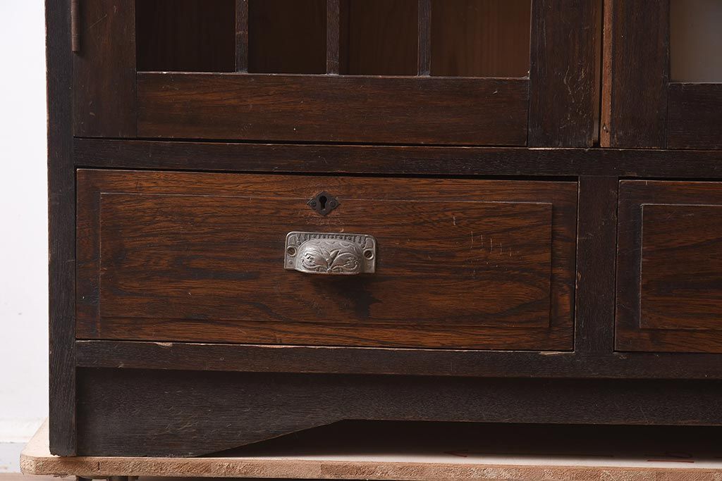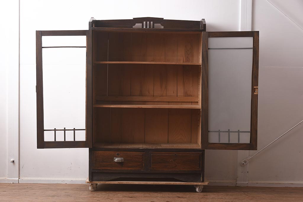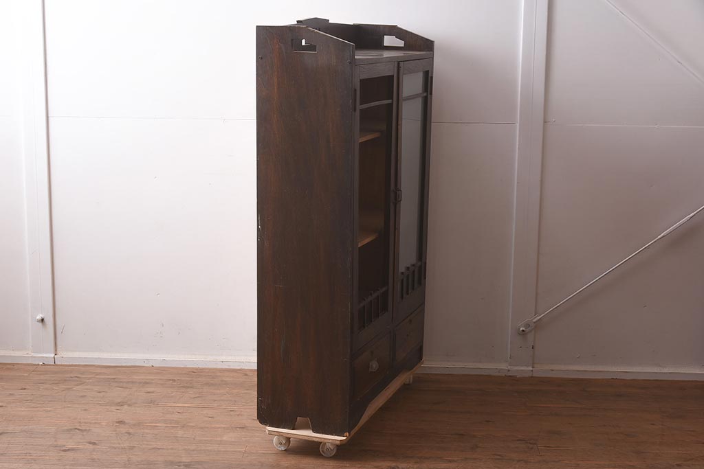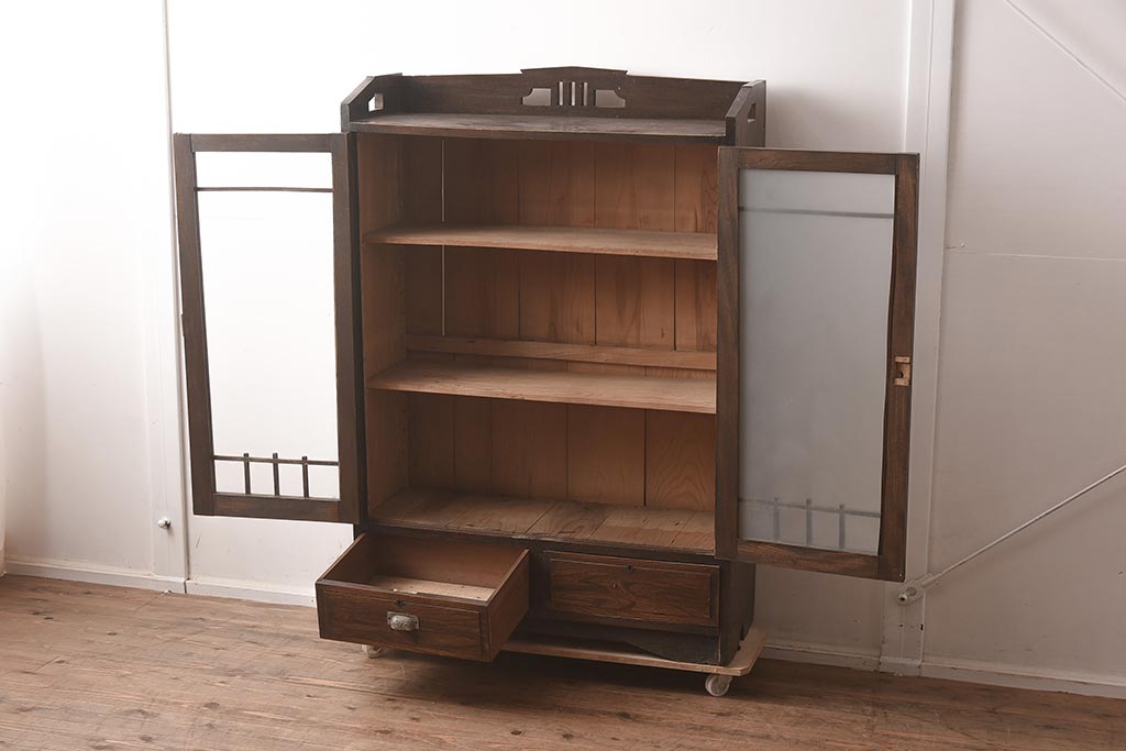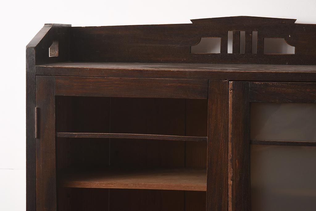 アンティーク家具 栓材 透かし入りのノスタルジックな木製ブックケース(戸棚、収納棚、キャビネット)(R-042509)