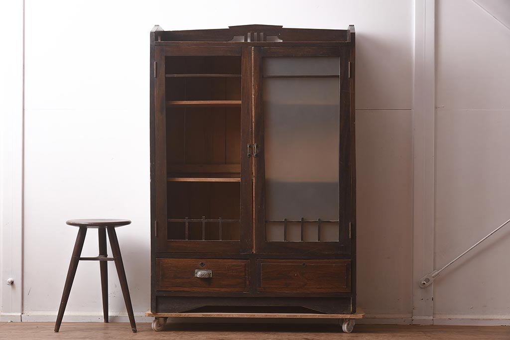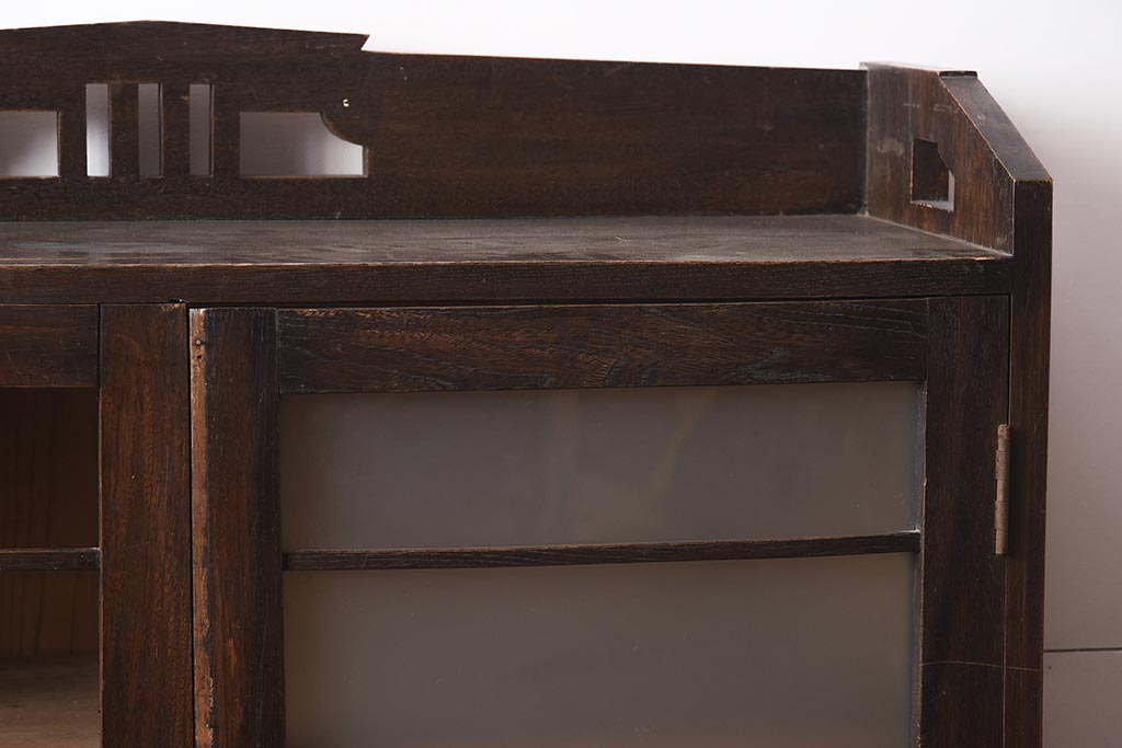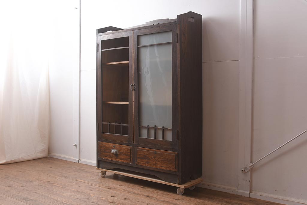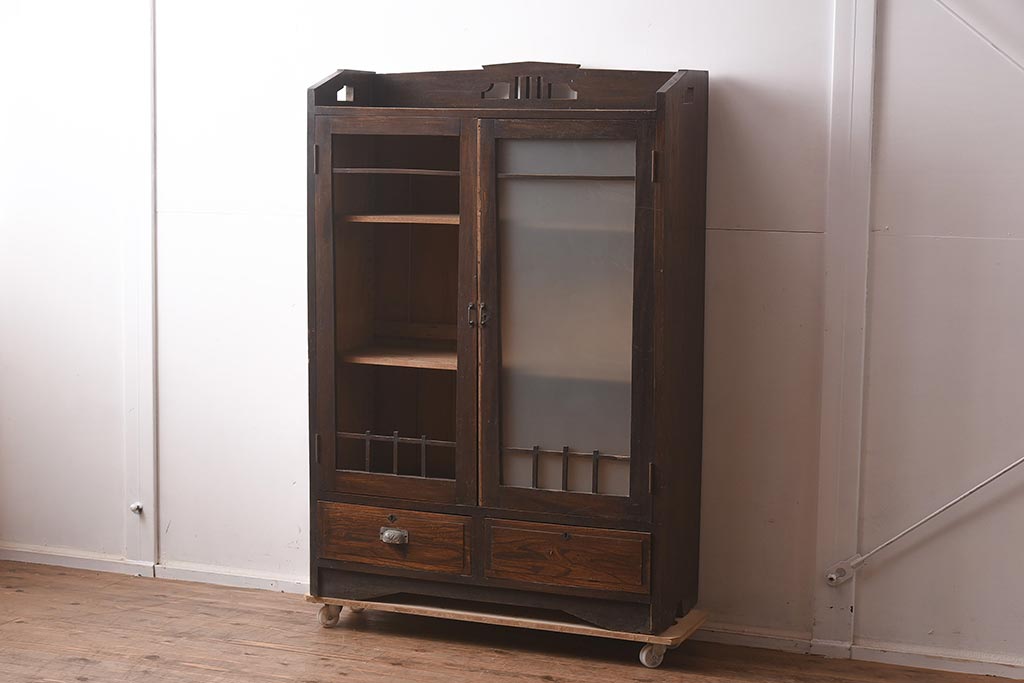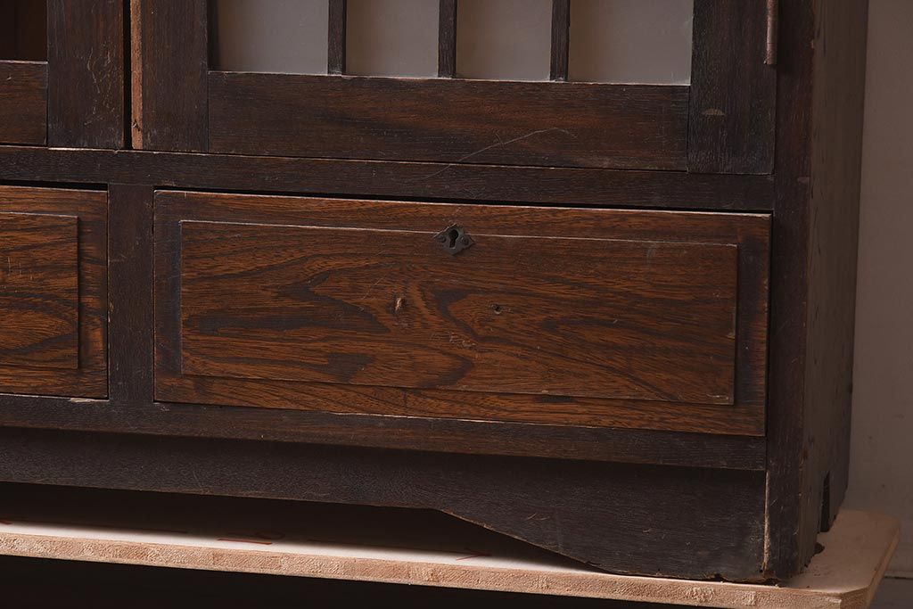 アンティーク家具 栓材 透かし入りのノスタルジックな木製ブックケース(戸棚、収納棚、キャビネット)(R-042509)