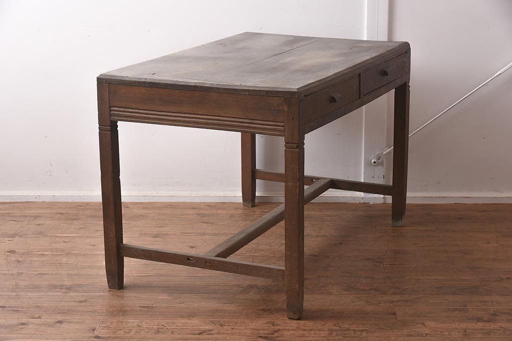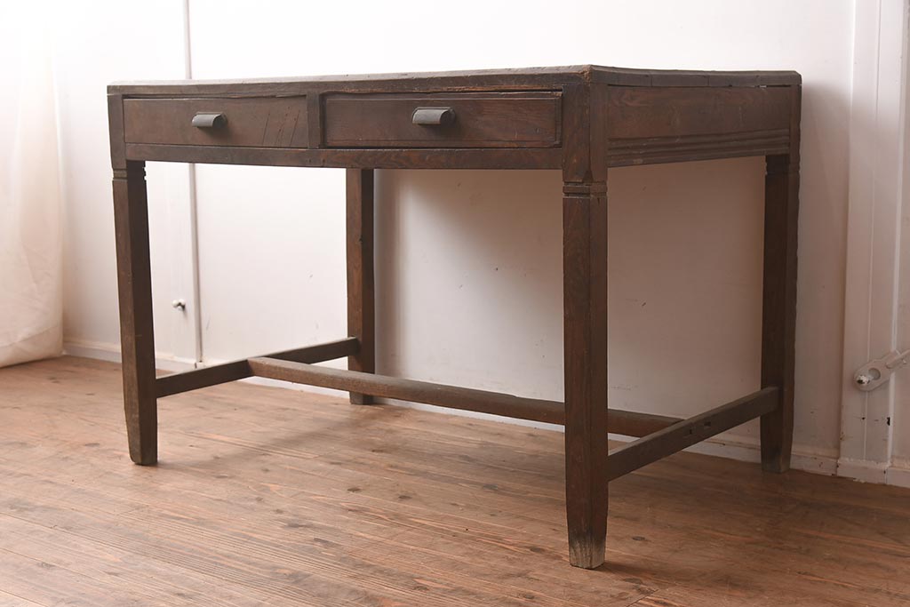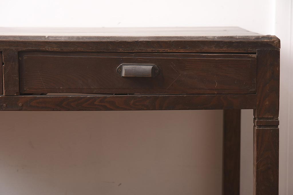 デスク> ワークデスク > アンティーク家具 昭和レトロ 栗材製の大振りな平机(ワークデスク、在宅ワーク、在宅用)(R-042505)
