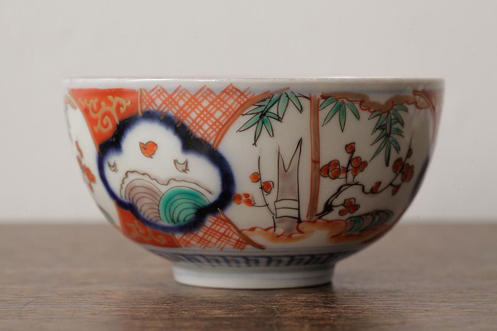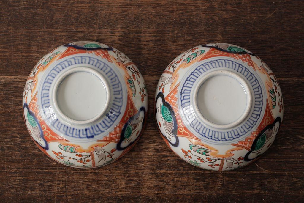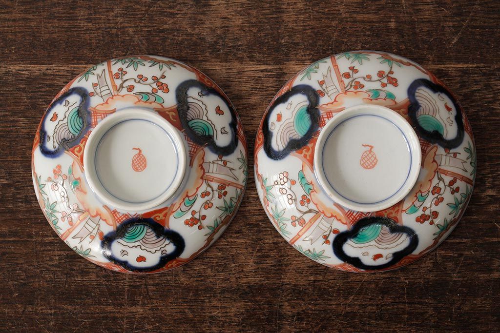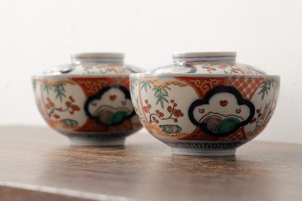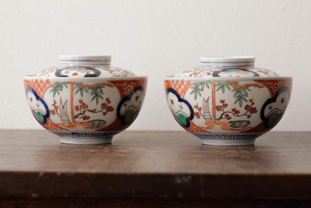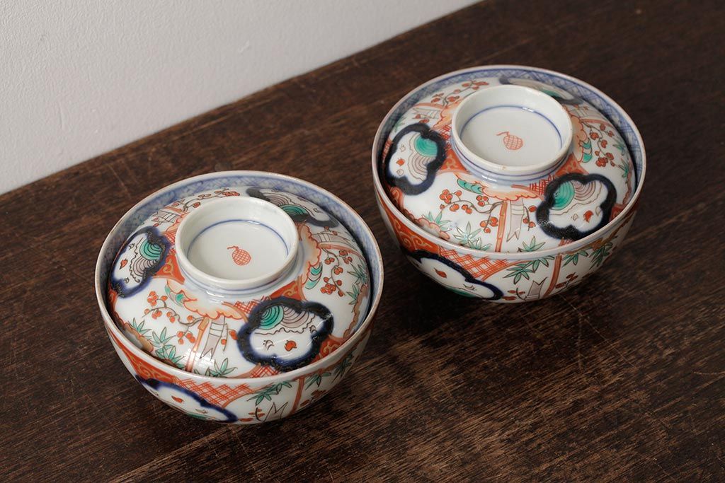ラフジュ工房> 骨董・美術品> 骨董-陶磁器 > アンティーク雑貨 江戸期 古伊万里 色絵染付蓋茶碗2客セット(和食器)(R-042587)