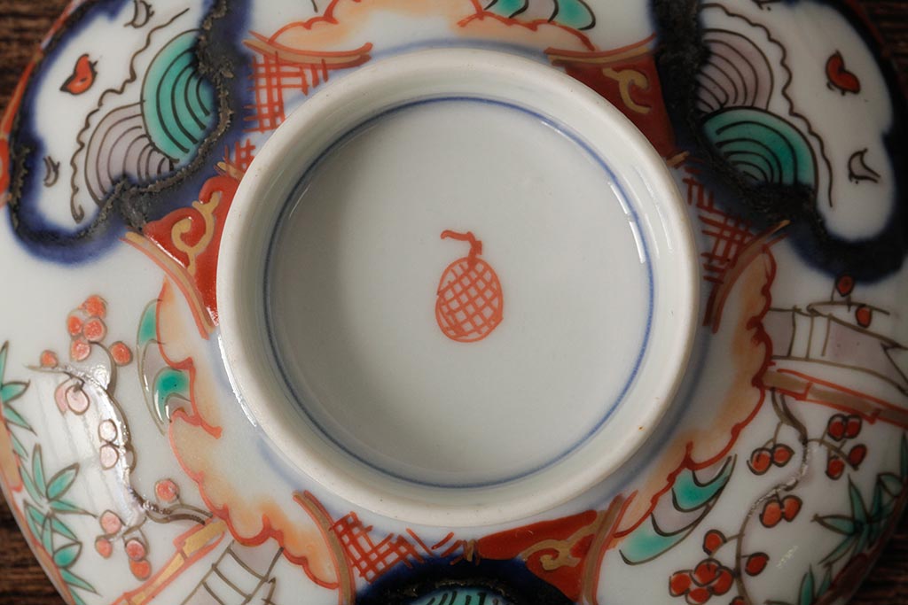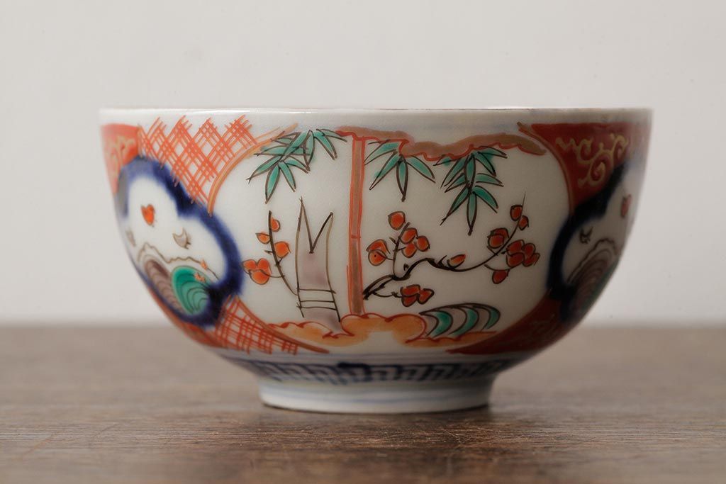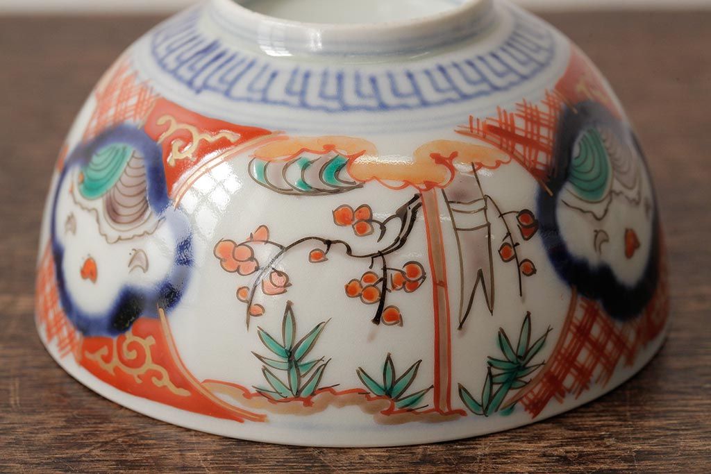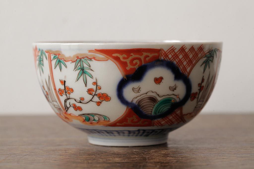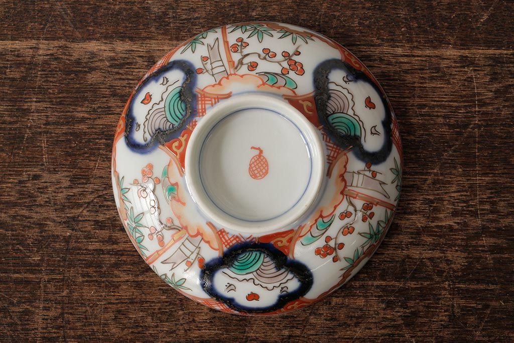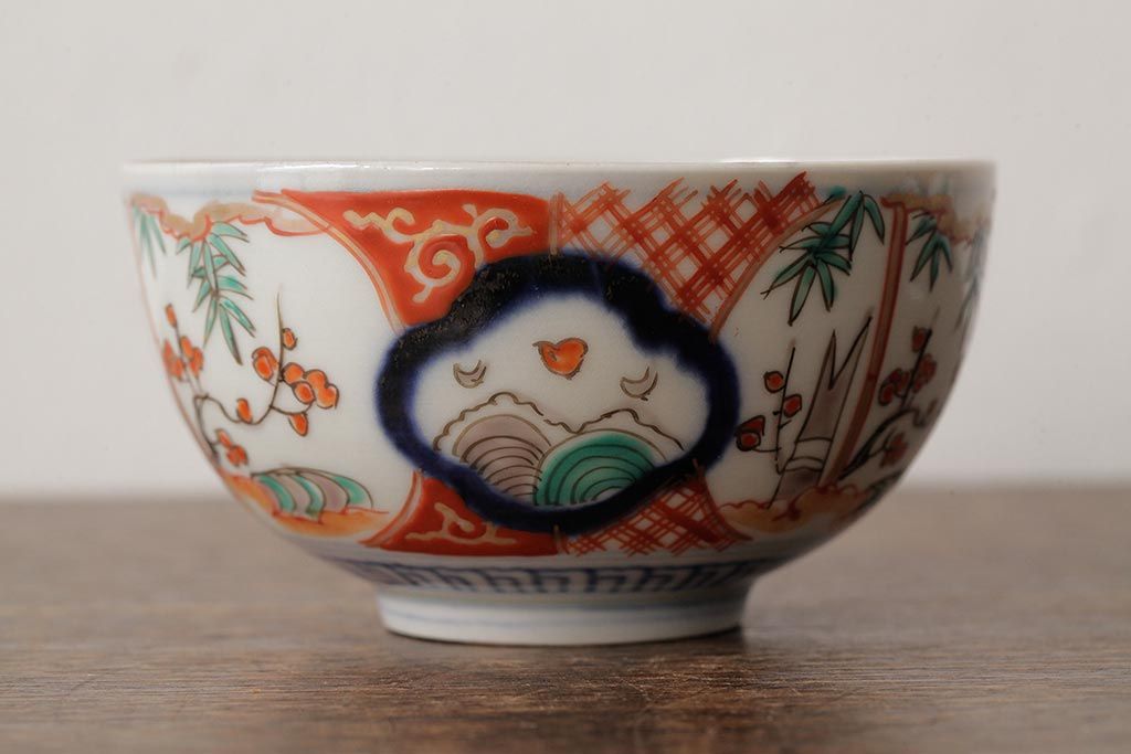ラフジュ工房> 骨董・美術品> 骨董-陶磁器 > アンティーク雑貨 江戸期 古伊万里 色絵染付蓋茶碗2客セット(和食器)(R-042587)