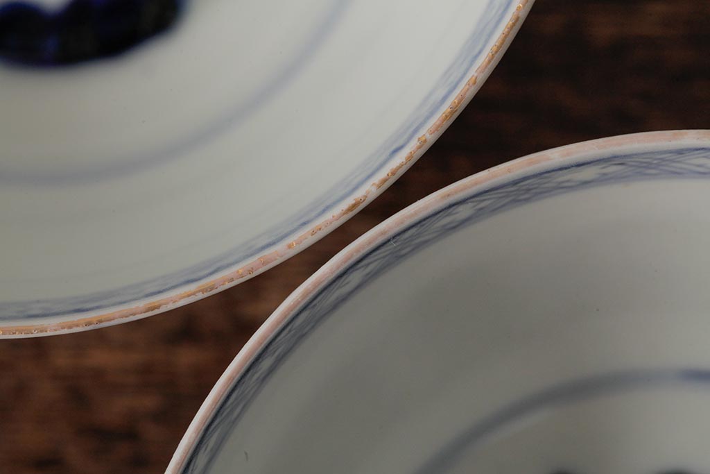 ラフジュ工房> 和食器・茶道具> お椀・茶碗 > アンティーク雑貨 江戸期 古伊万里 色絵染付蓋茶碗2客セット(和食器)(R-042587)