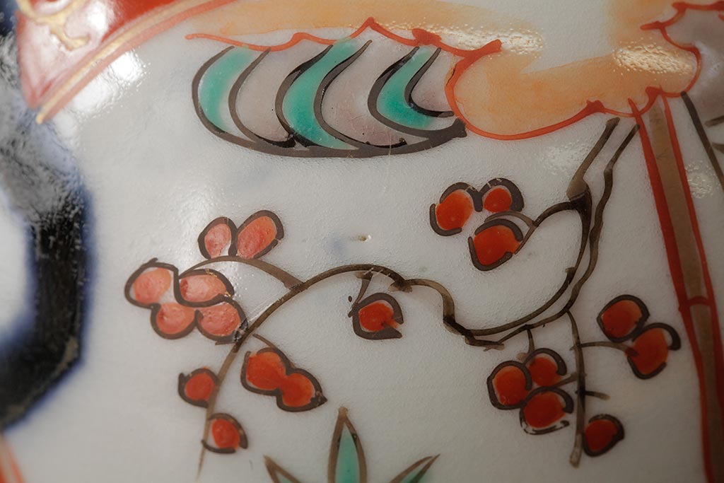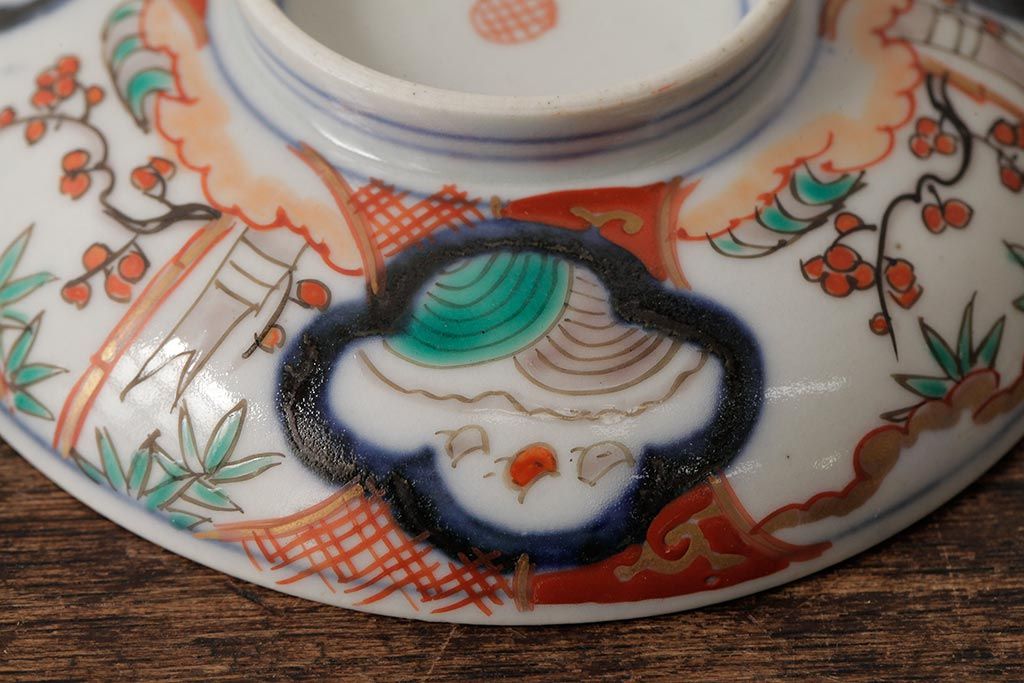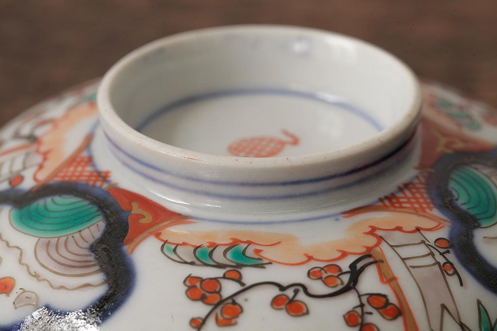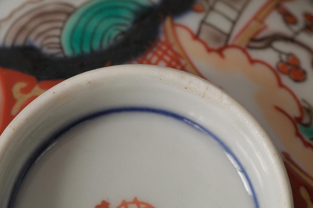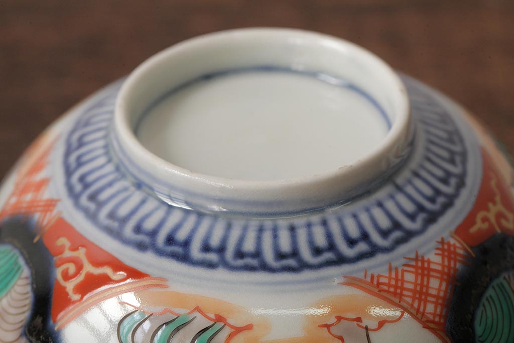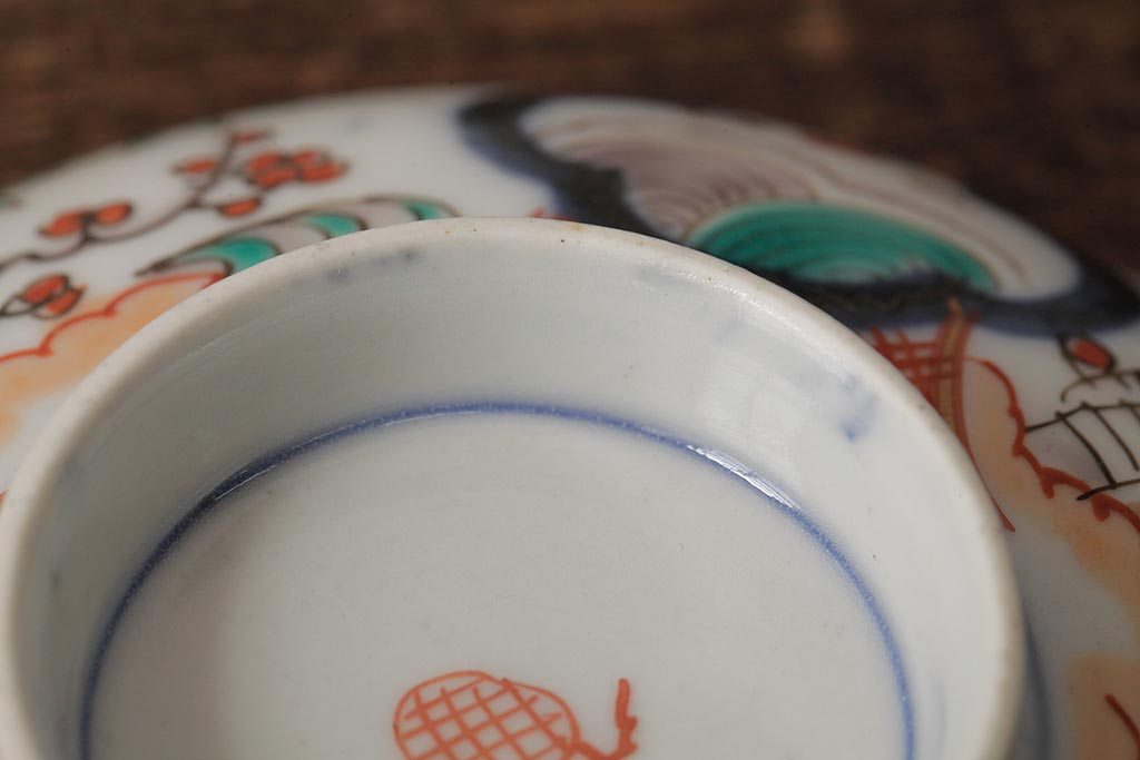 アンティーク雑貨 江戸期 古伊万里 色絵染付蓋茶碗2客セット(和食器)(R-042588)