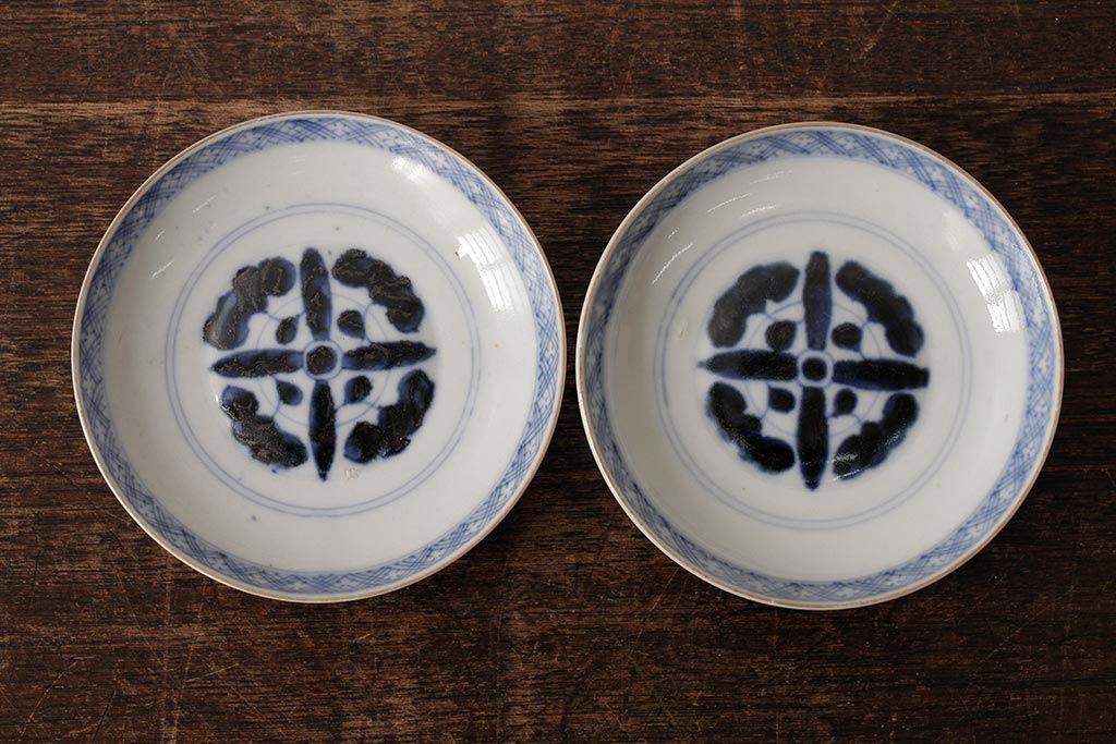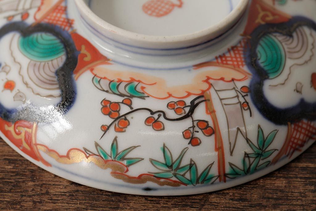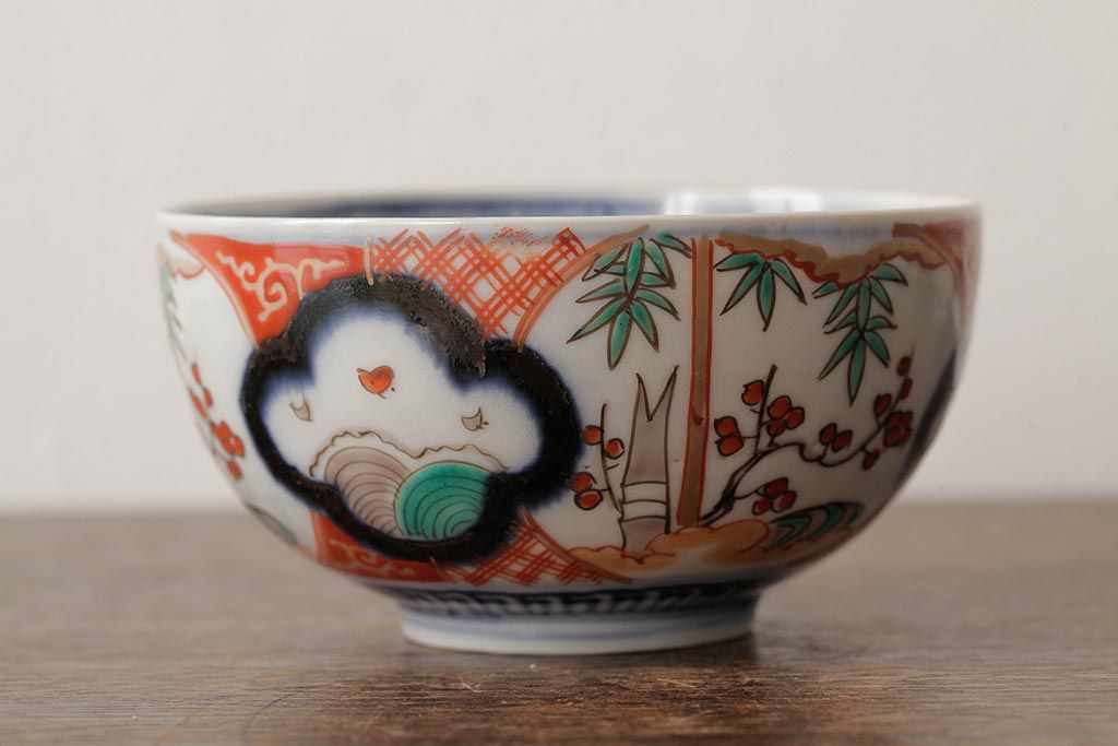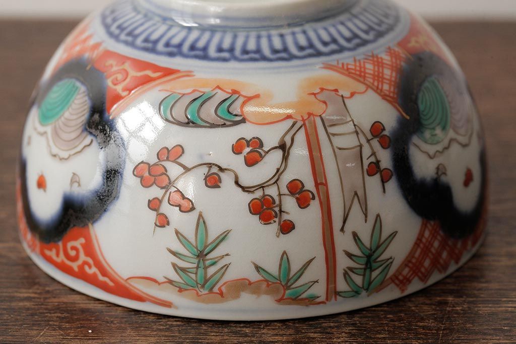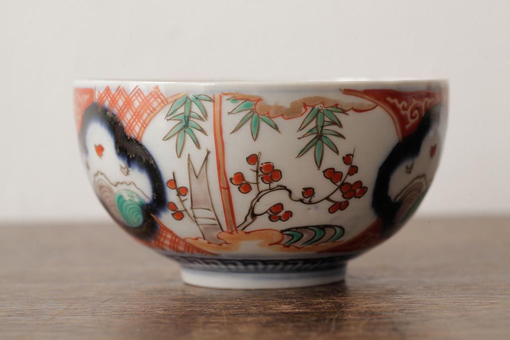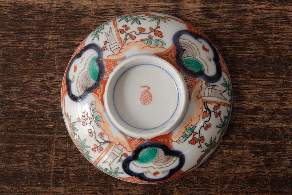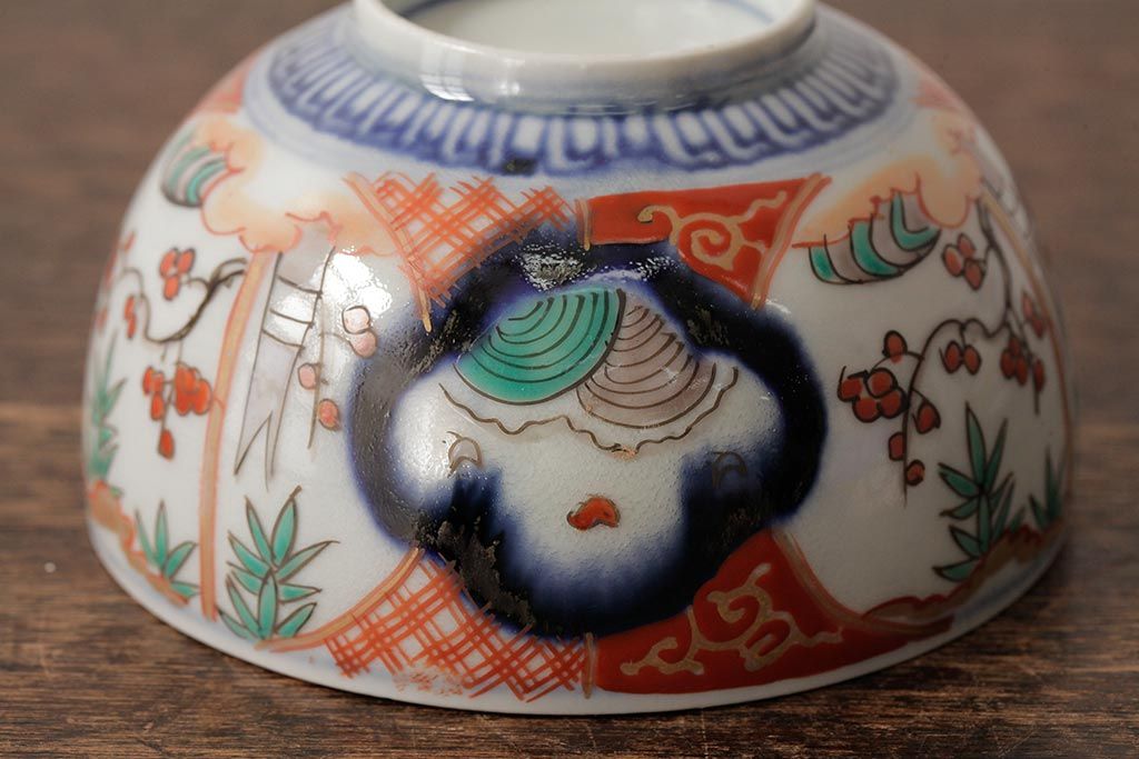 ラフジュ工房> 骨董・美術品> 骨董-陶磁器 > アンティーク雑貨 江戸期 古伊万里 色絵染付蓋茶碗2客セット(和食器)(R-042588)