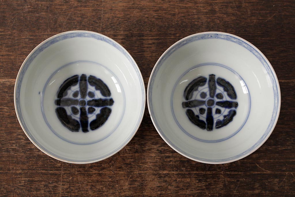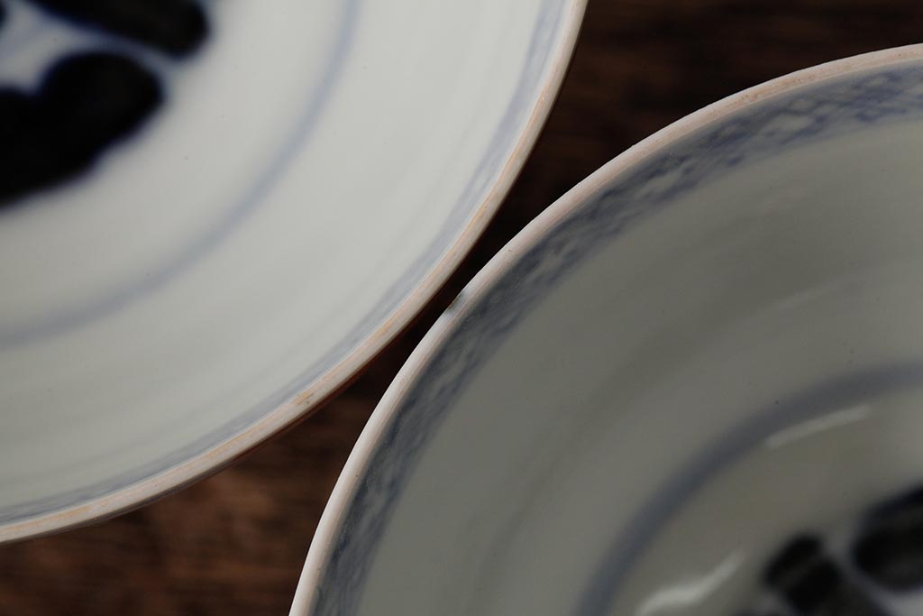 ラフジュ工房> 和食器・茶道具> お椀・茶碗 > アンティーク雑貨 江戸期 古伊万里 色絵染付蓋茶碗2客セット(和食器)(R-042588)