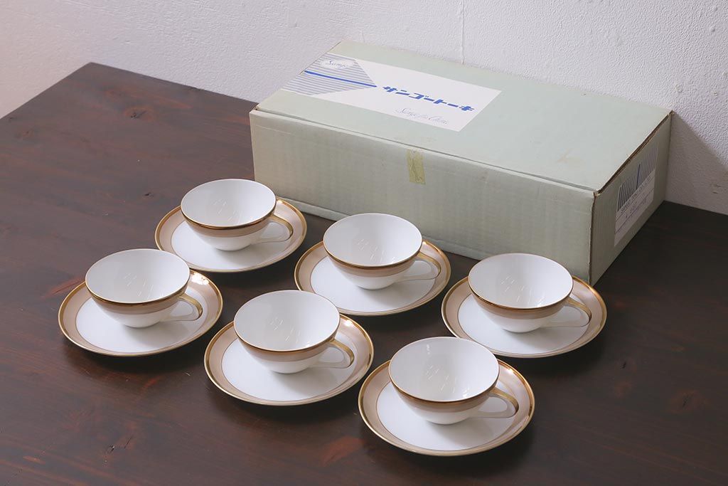 ラフジュ工房> 洋食器・キッチン用品> カップ&ソーサー > 昭和レトロ 未使用 サンゴートーキ(三郷陶器) 陶器カップ&ソーサー6客(R-042360)