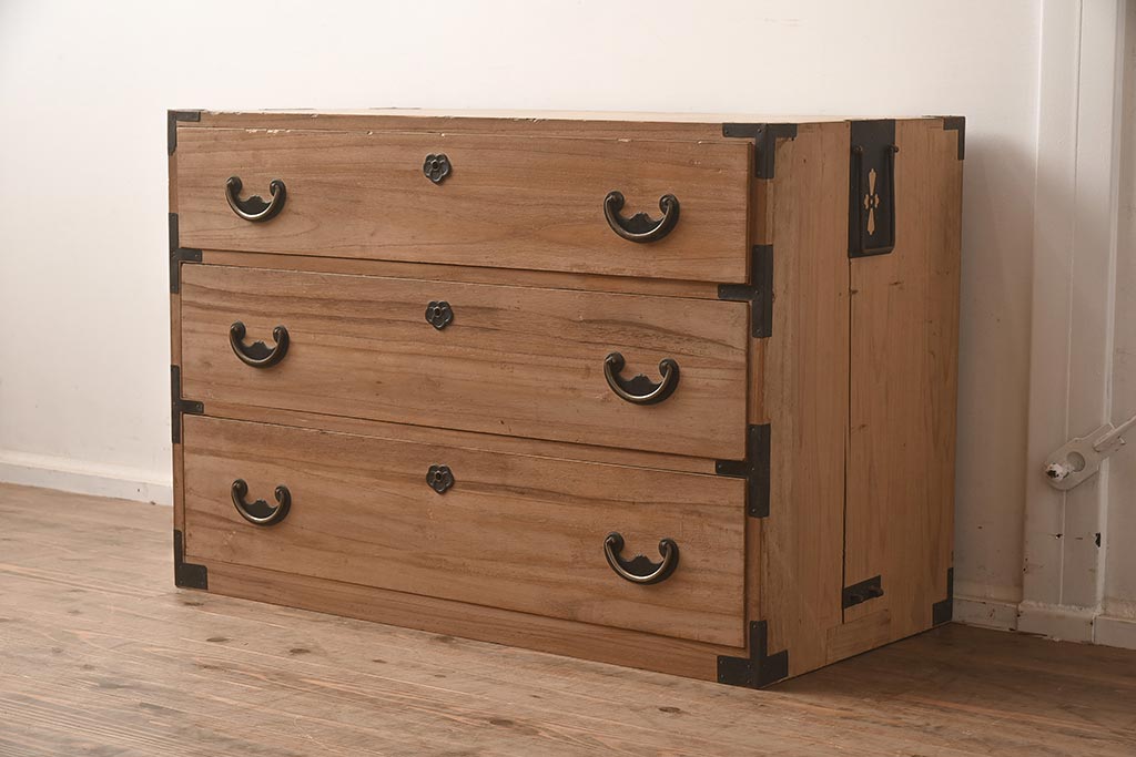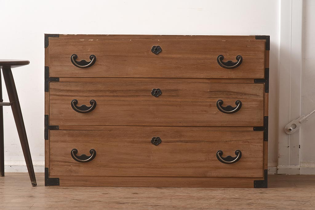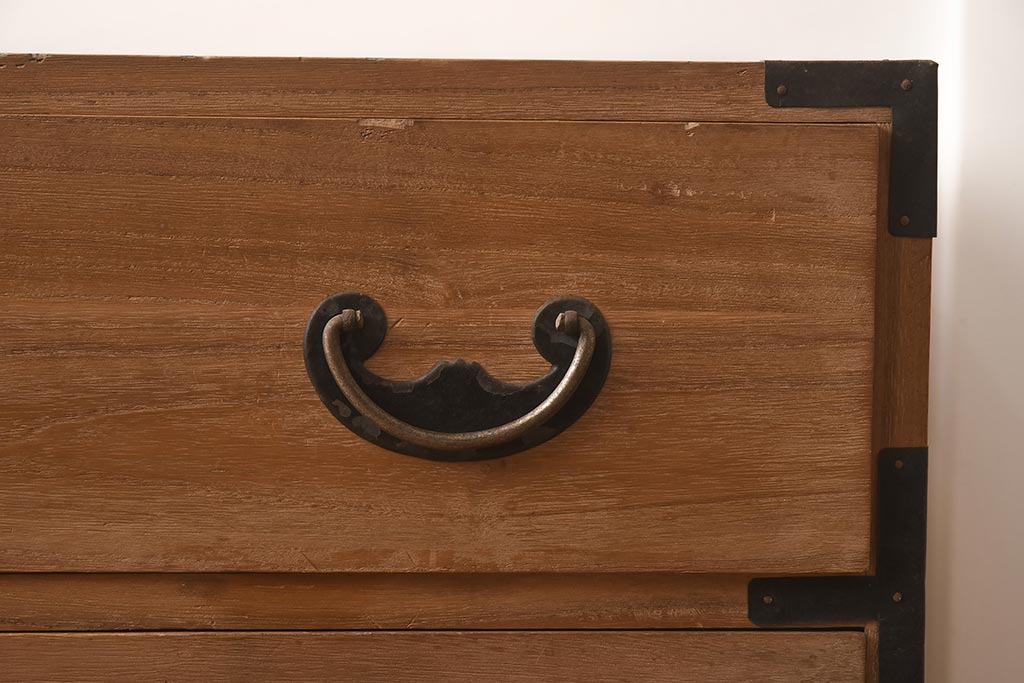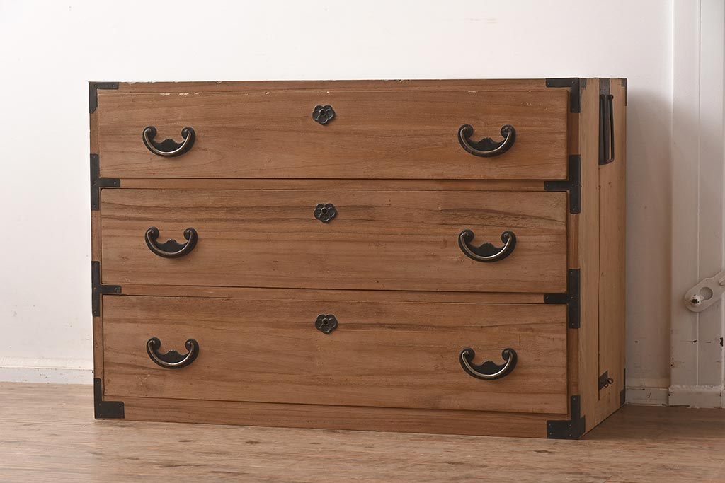 アンティーク家具 前面桐材 金具が個性的な箪笥ローボード(ローチェスト、引き出し、衣装箪笥)(R-042533)です。