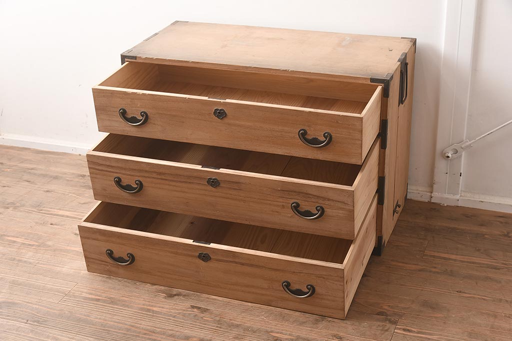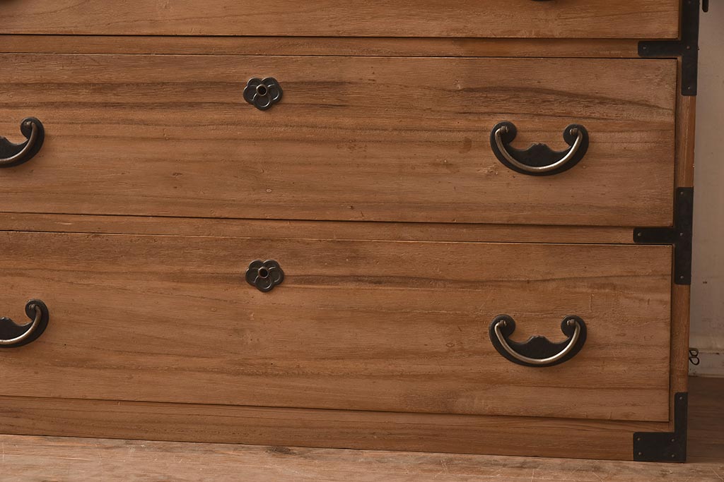 アンティーク家具 前面桐材 金具が個性的な箪笥ローボード(ローチェスト、引き出し、衣装箪笥)(R-042533)