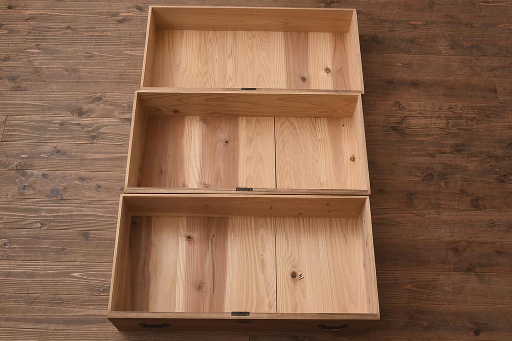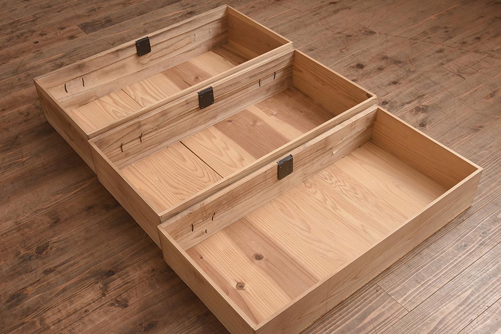 ・引き出し・引き戸・扉等の可動部分は調整してありますが、無垢材の特性として、湿度や気温などの変化によりきつくなったり緩くなったりする場合がございますので、ご理解の上お願いします。