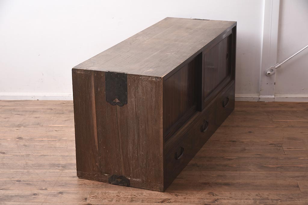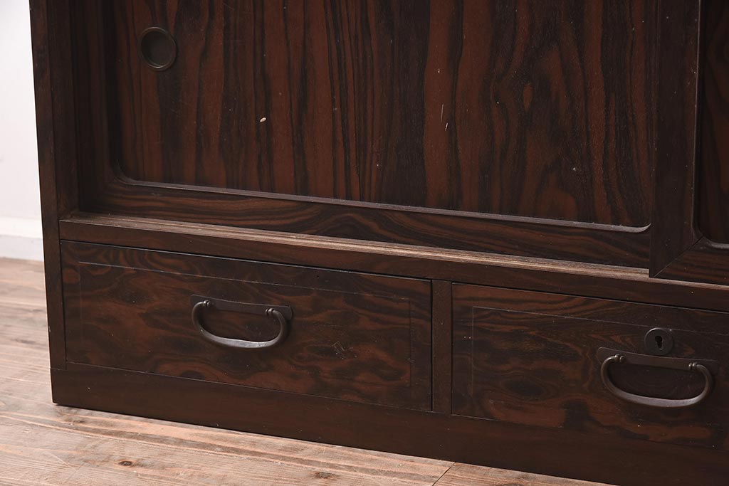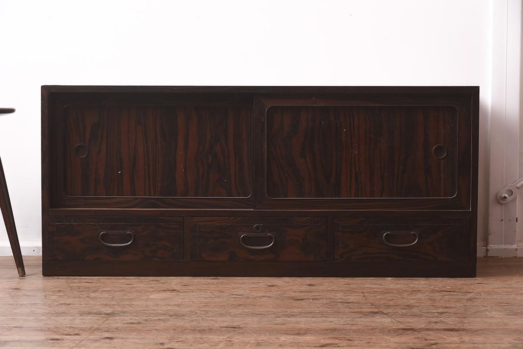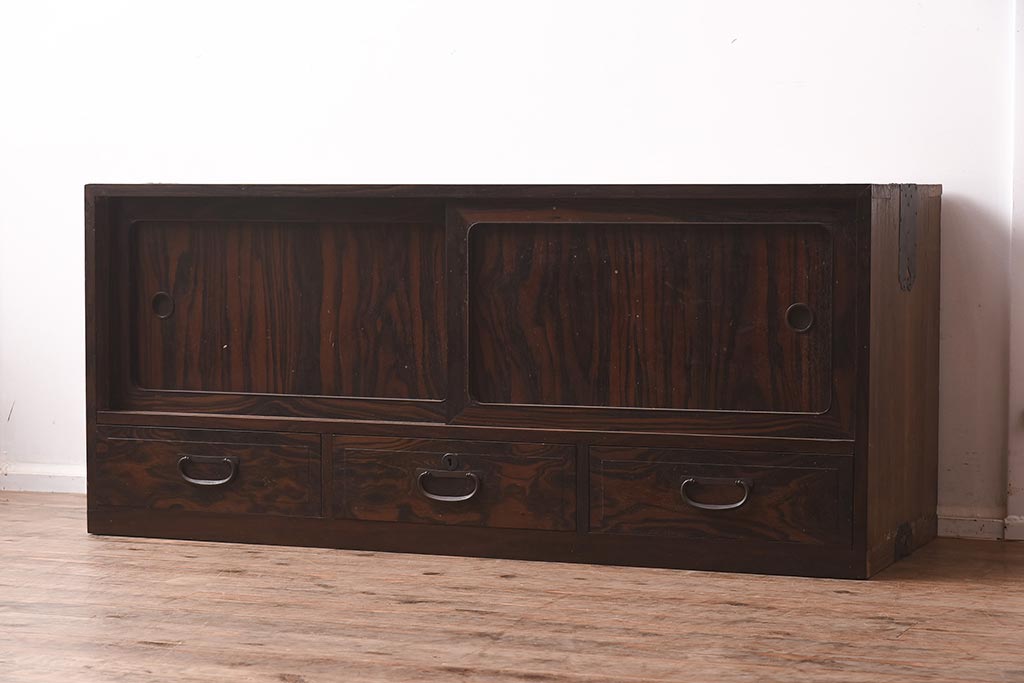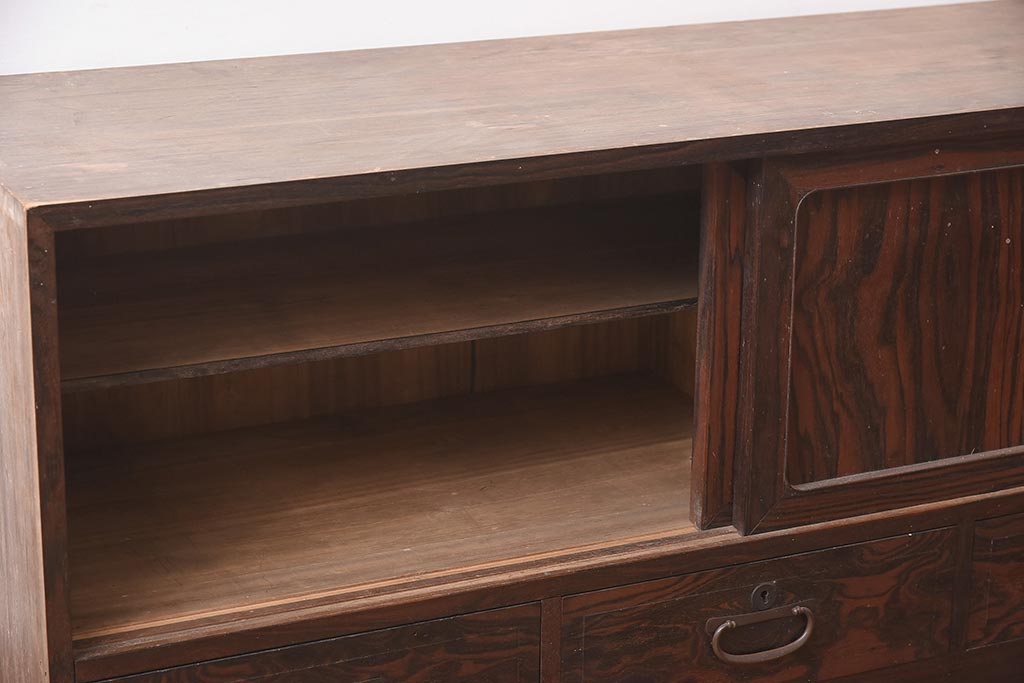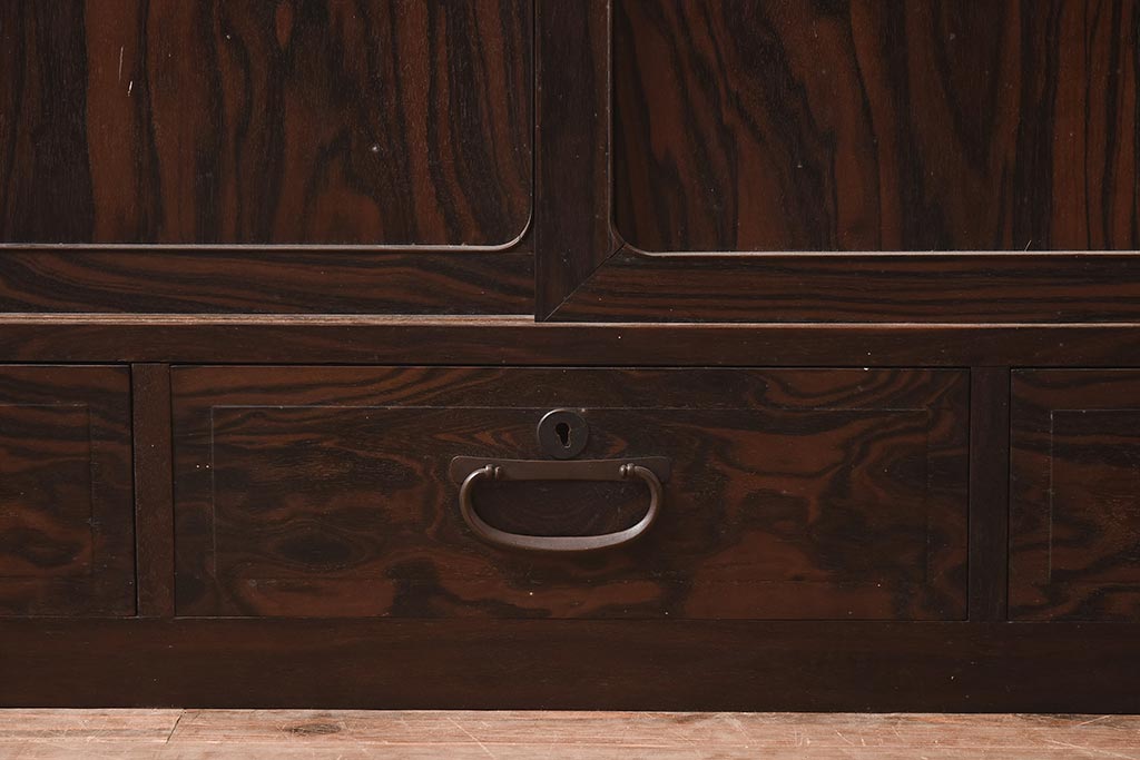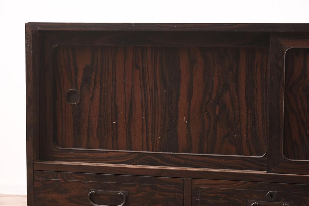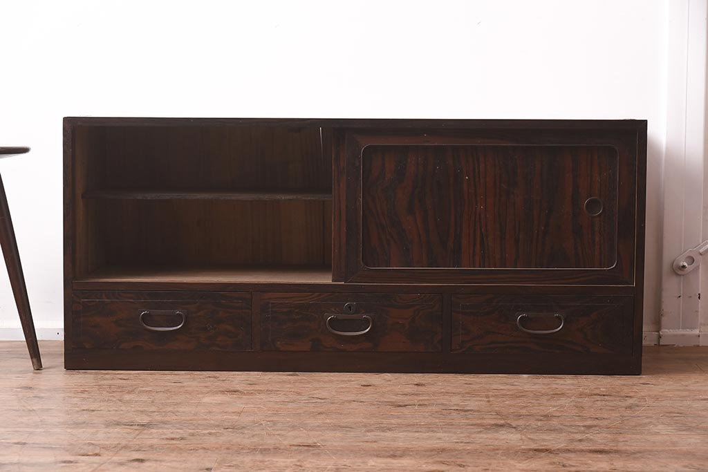 アンティーク家具 縞黒檀 上品な和の雰囲気漂うローボード(テレビ台、収納棚、リビングボード、戸棚)(R-042541)