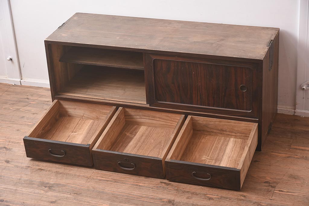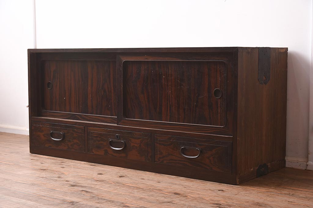 アンティーク家具 縞黒檀 上品な和の雰囲気漂うローボード(テレビ台、収納棚、リビングボード、戸棚)(R-042541)です。