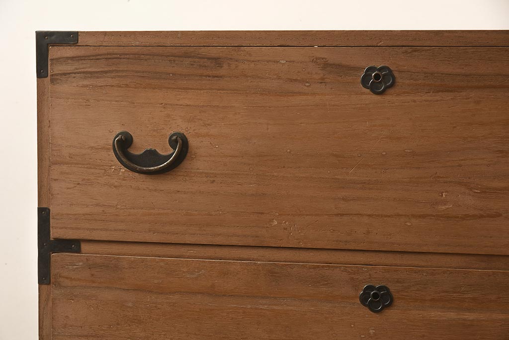 和箪笥 > アンティーク家具 和製アンティーク 前面桐材 金具が個性的な箪笥ローボード(引き出し、和タンス、ローチェスト、桐箪笥、桐たんす)(R-042513)