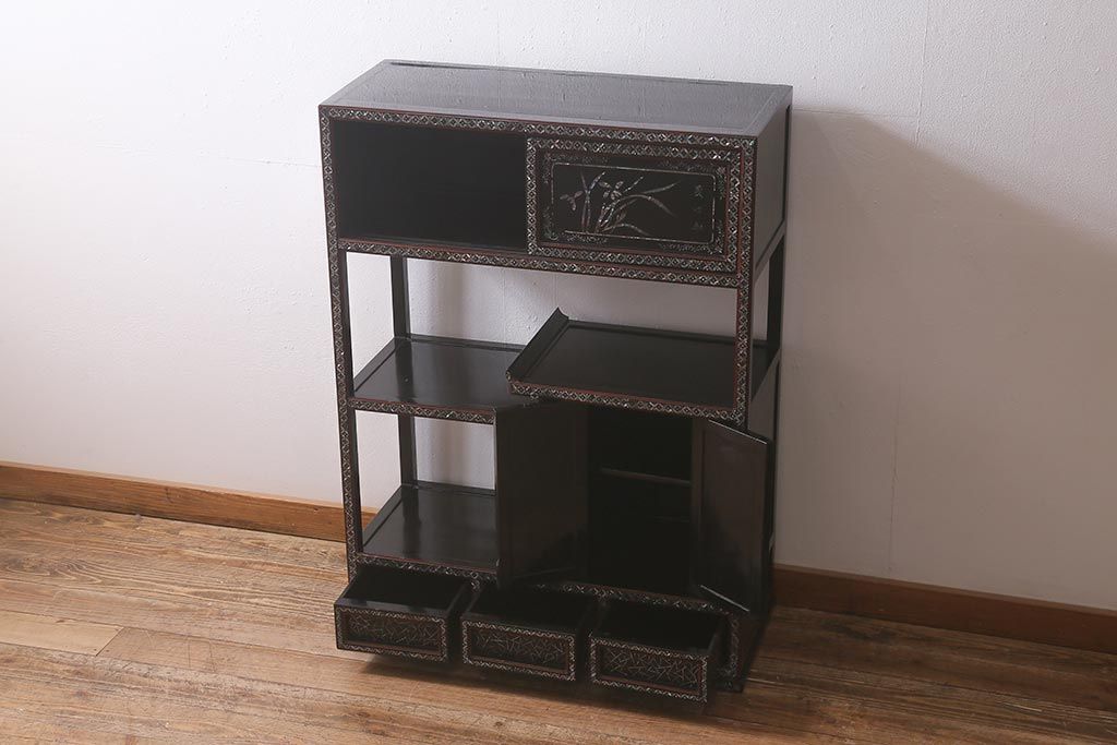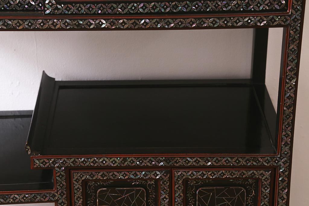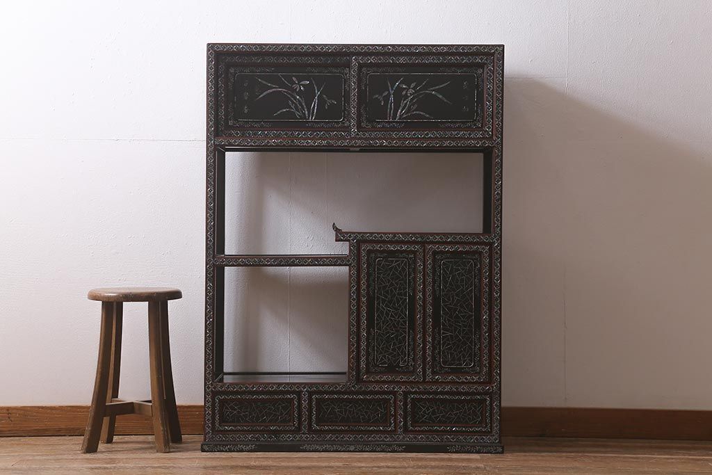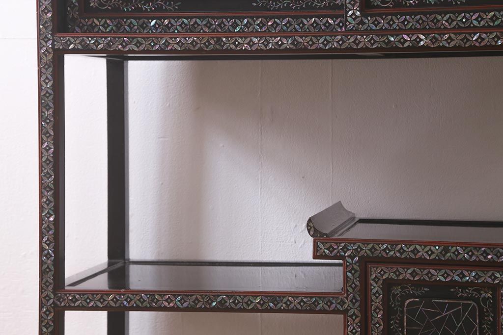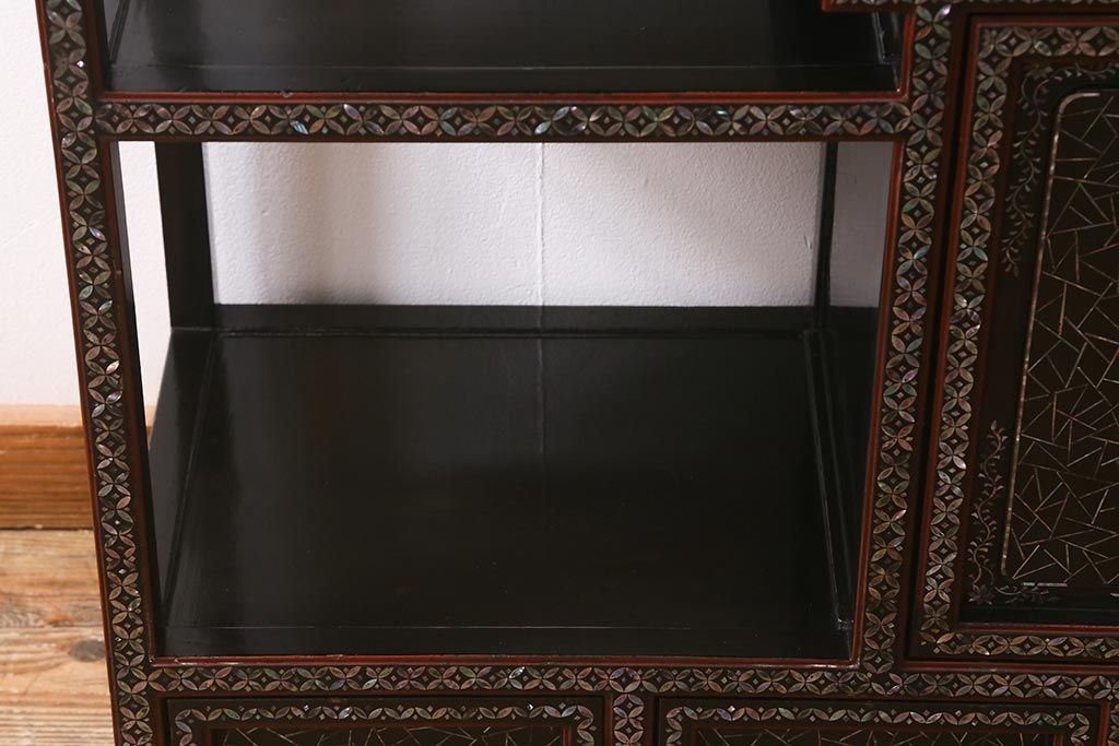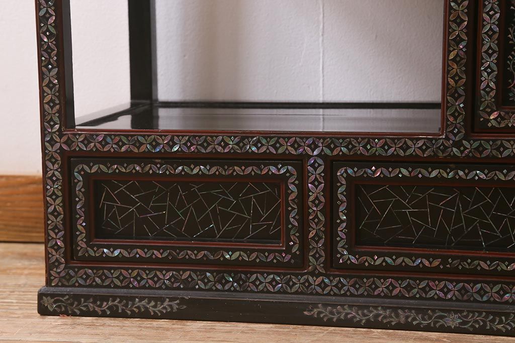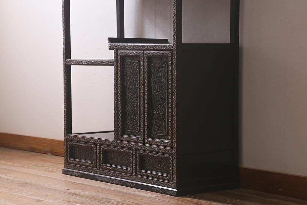 時代物 昭和中期 細かな螺鈿の装飾が美しい飾り棚(飾棚、茶棚)(R-042551)
