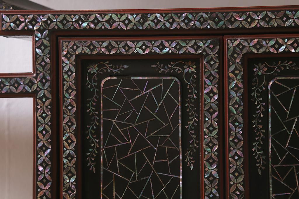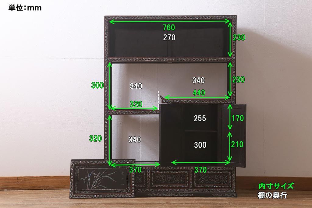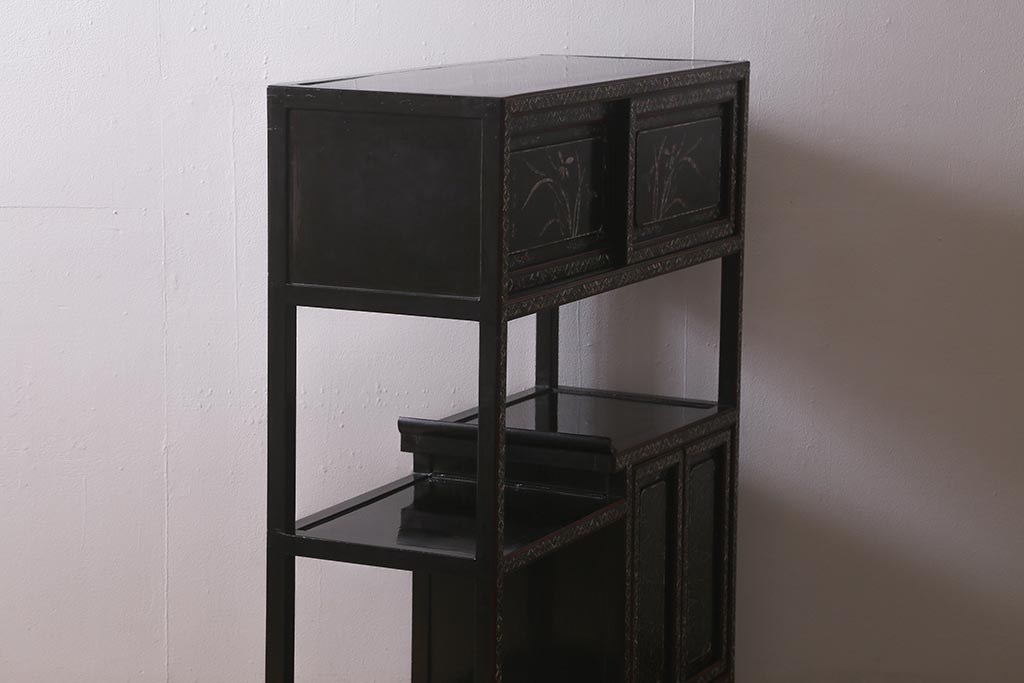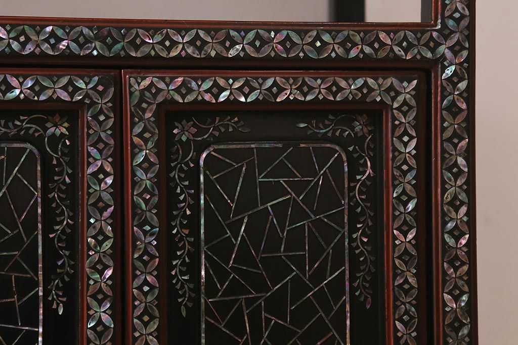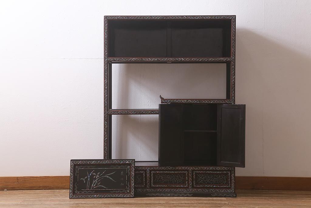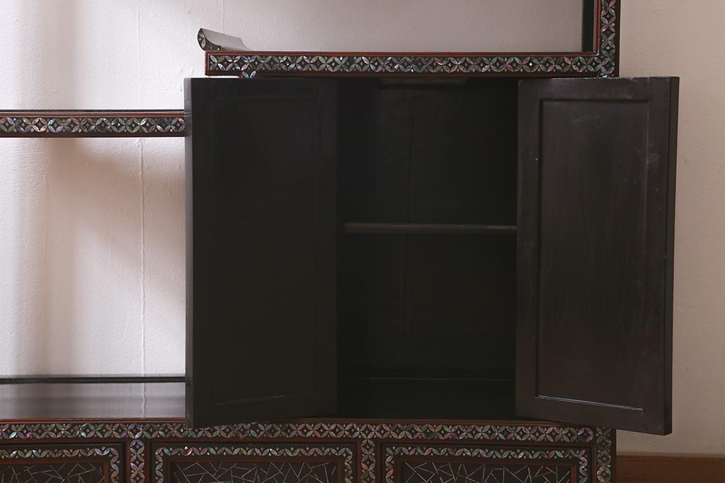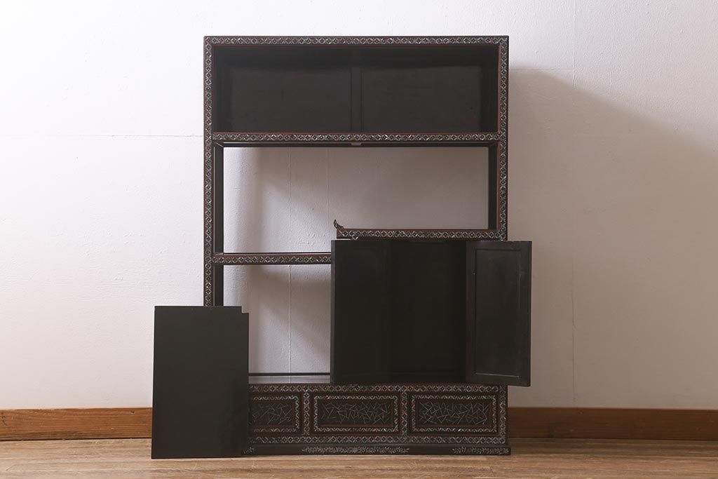 時代物 昭和中期 細かな螺鈿の装飾が美しい飾り棚(飾棚、茶棚)(R-042551)
