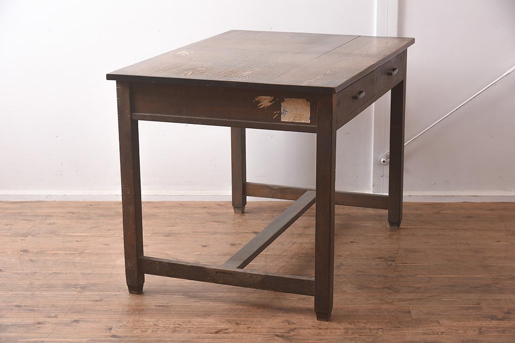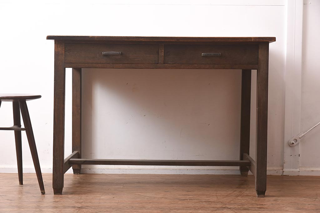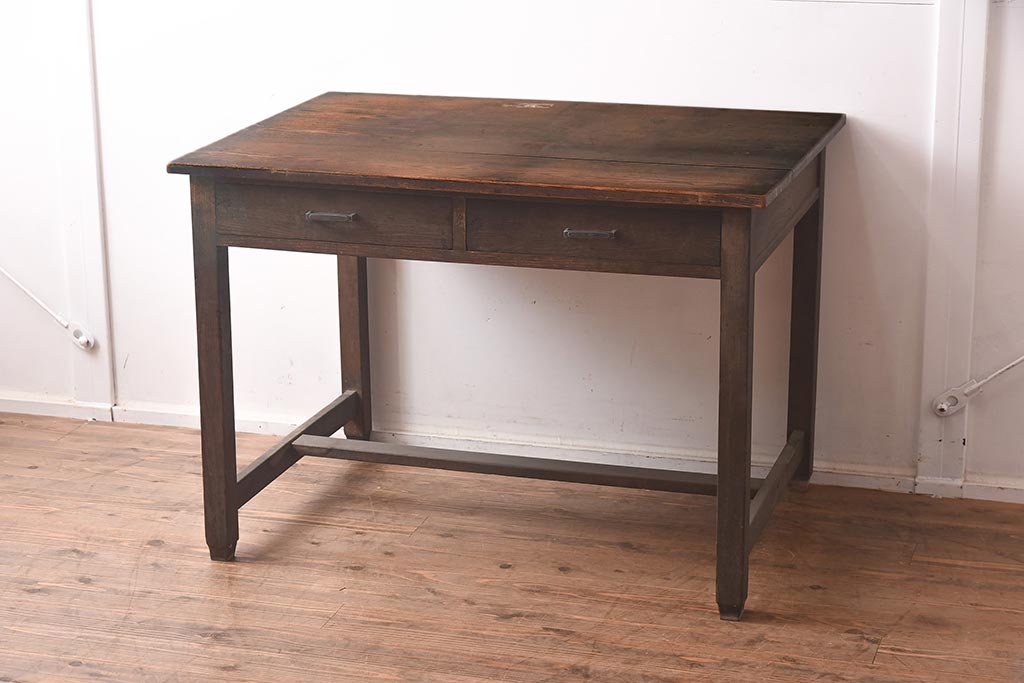 デスク> 平机 > アンティーク家具 栗材 天板の広い昭和レトロな平机(ワークデスク、在宅ワーク、在宅用)(R-042496)