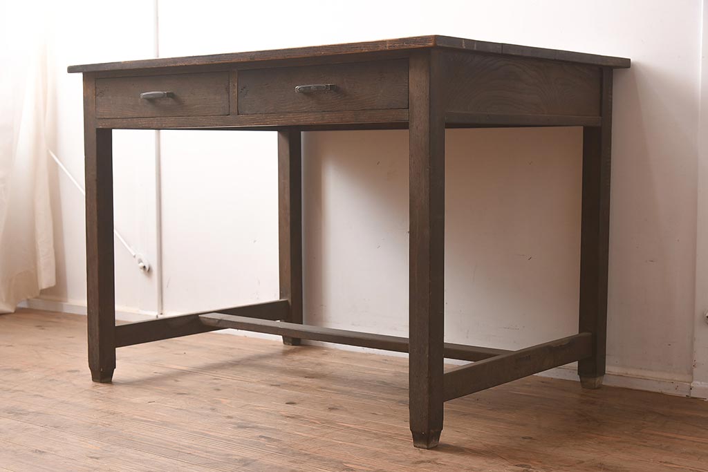 デスク> ワークデスク > アンティーク家具 栗材 天板の広い昭和レトロな平机(ワークデスク、在宅ワーク、在宅用)(R-042496)
