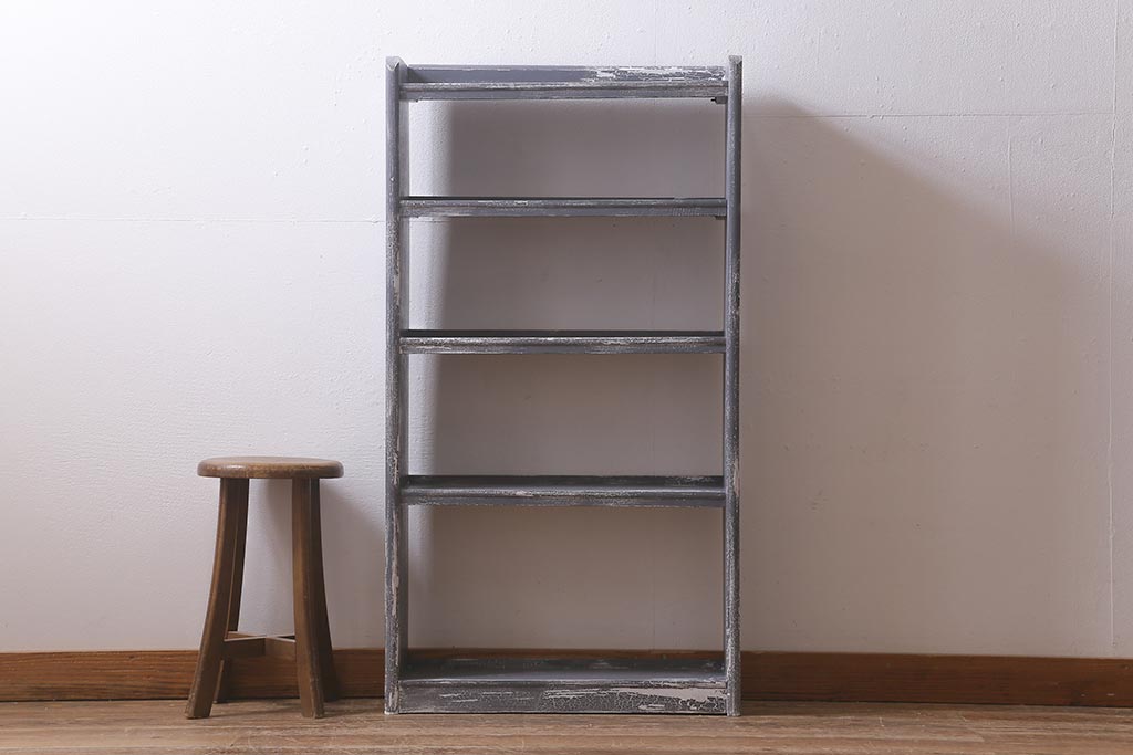 ラフジュ工房> オープンラック・シェルフ> ディスプレイラック > ペイント家具 昭和中期 シャビーな空間にぴったりなオープンラック(本棚、ウッドシェルフ、収納棚、飾り棚)(R-042499)