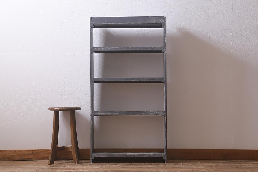 ラフジュ工房> 店舗什器 > ペイント家具 昭和中期 シャビーな空間にぴったりなオープンラック(本棚、ウッドシェルフ、収納棚、飾り棚)(R-042499)