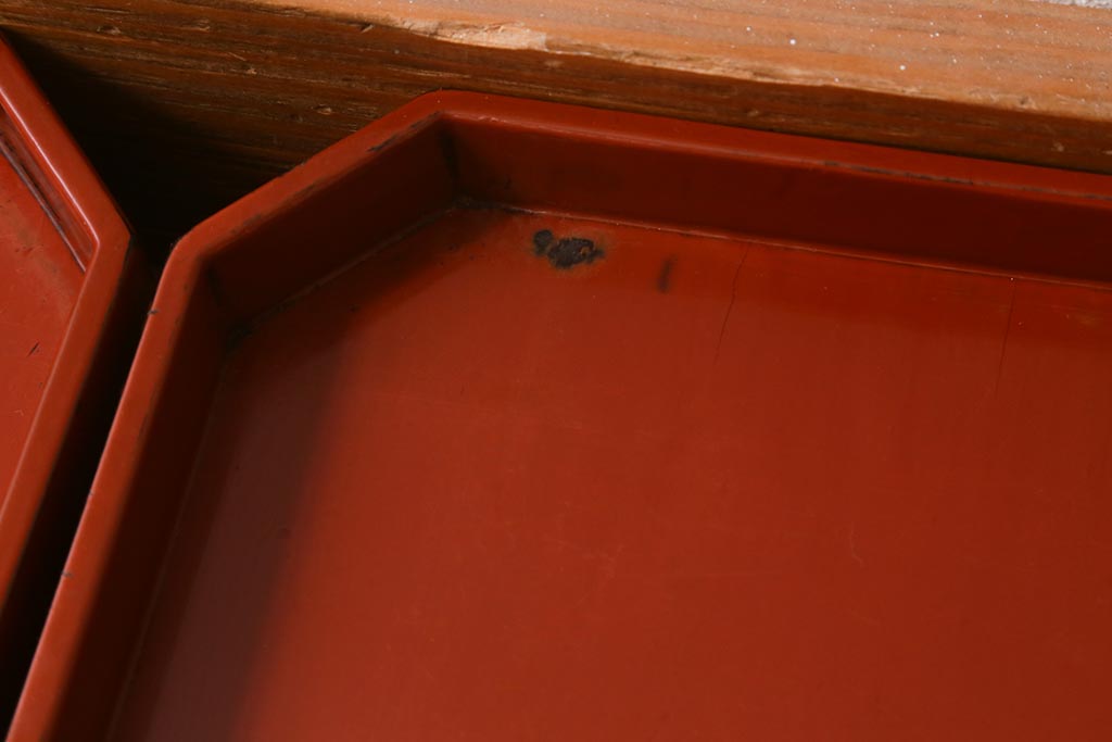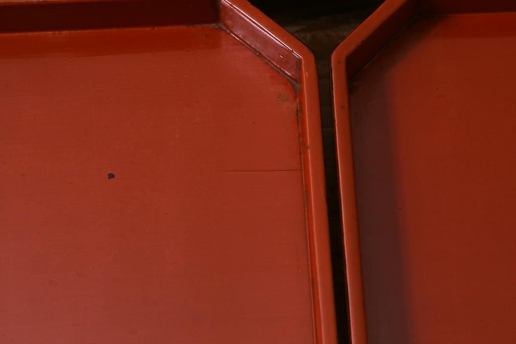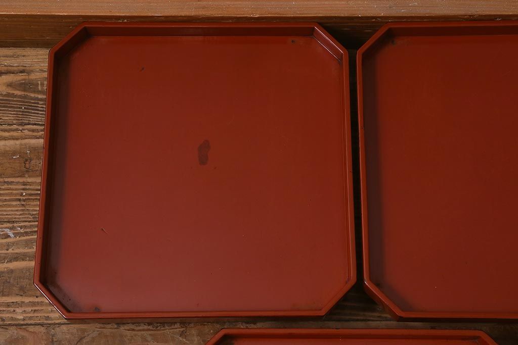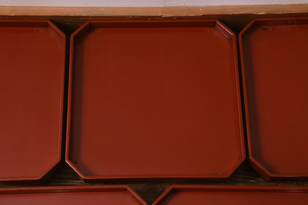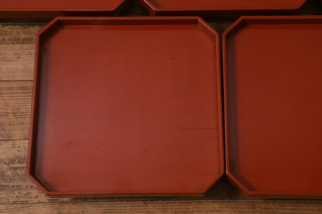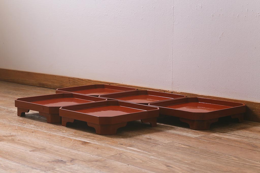 アンティーク雑貨 明治期 共箱 根来塗お膳5客セット(木製漆器、和食器)(R-042191)