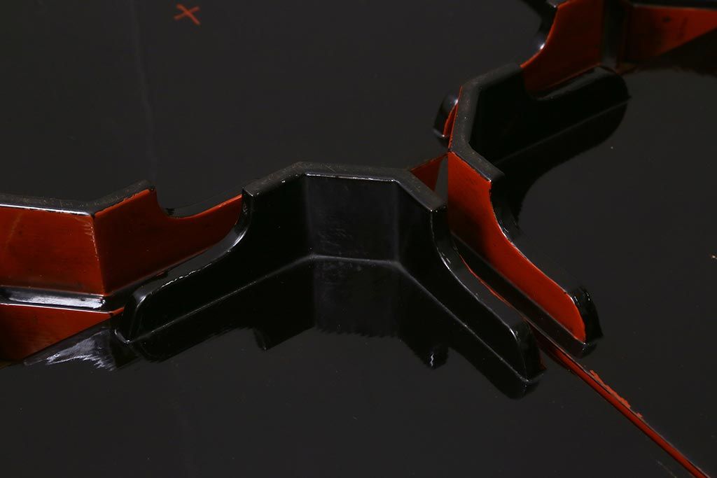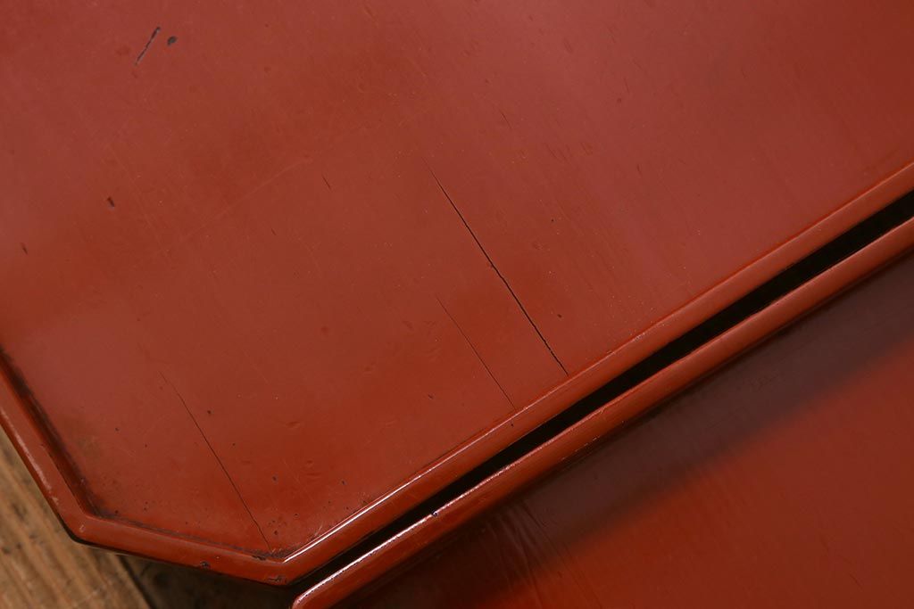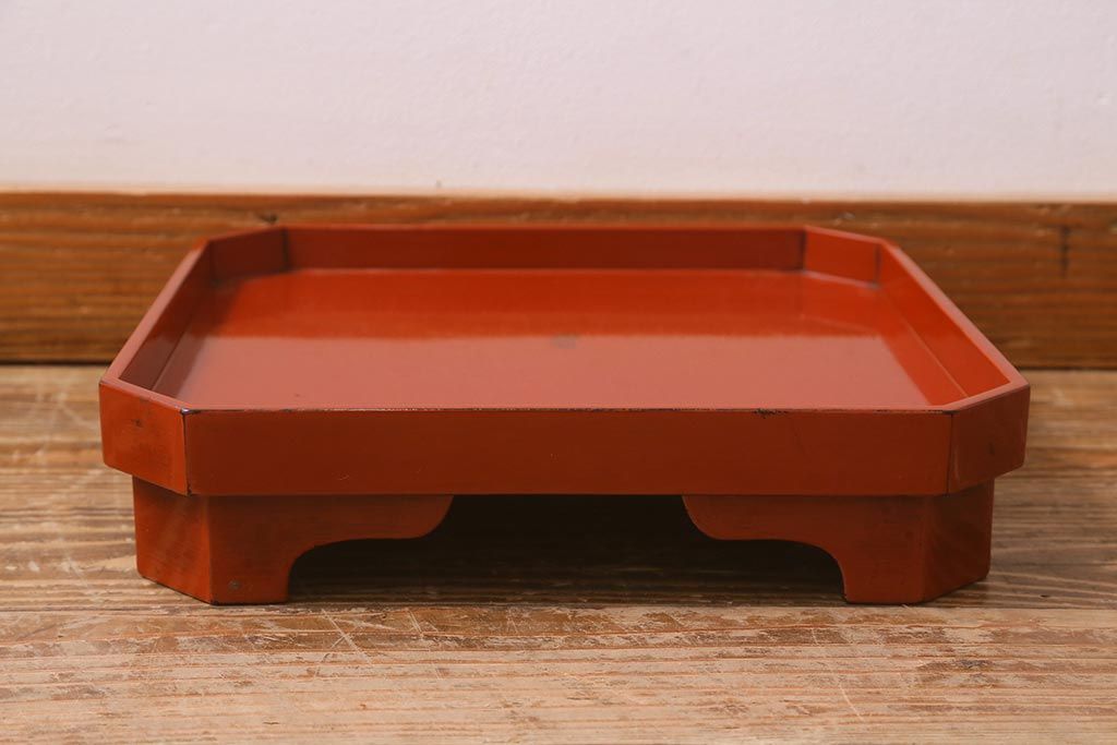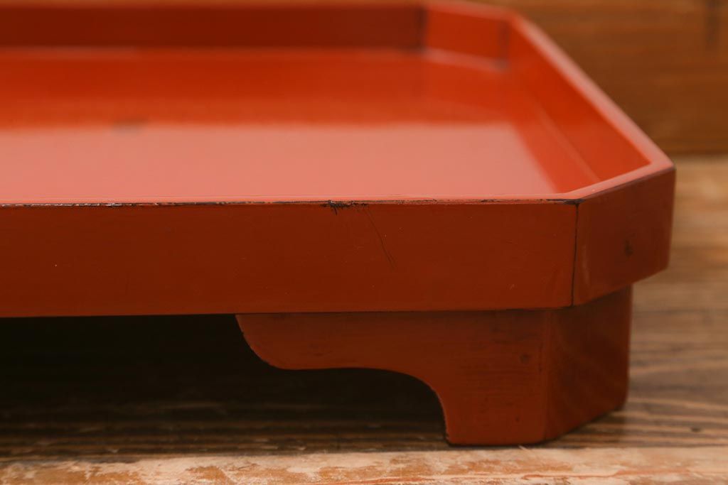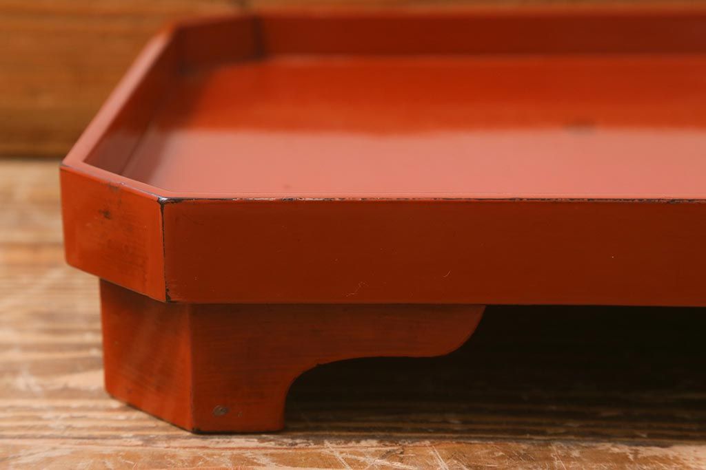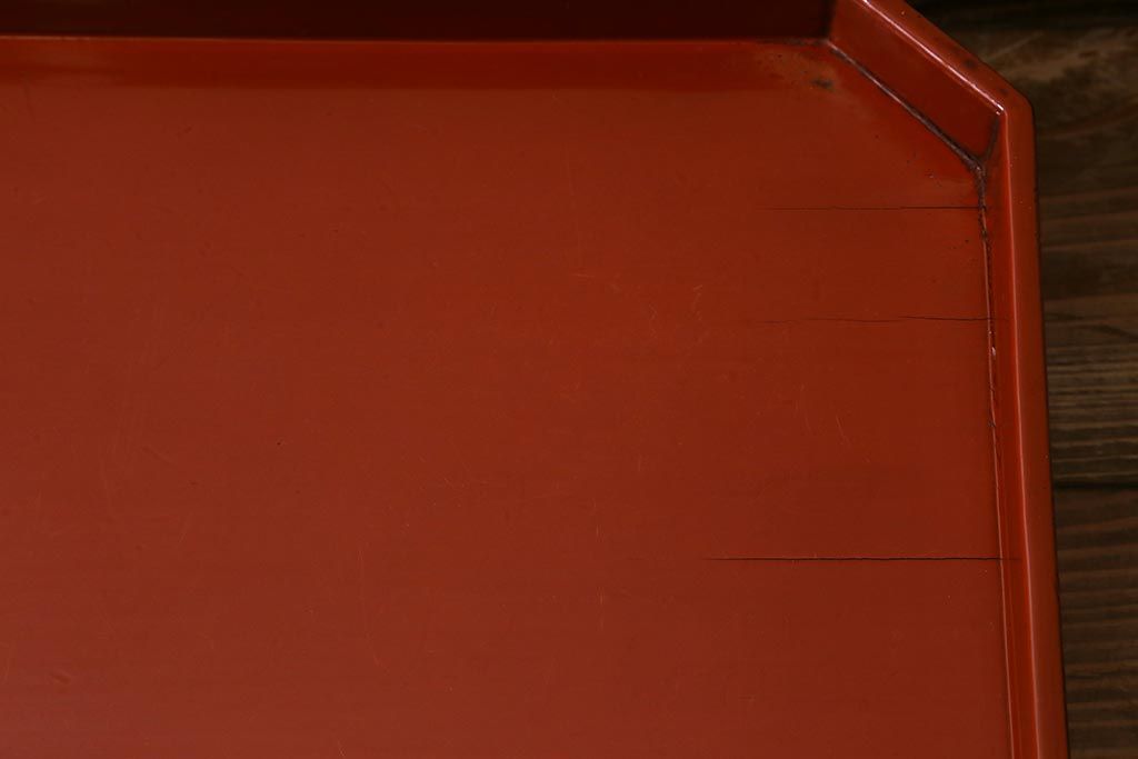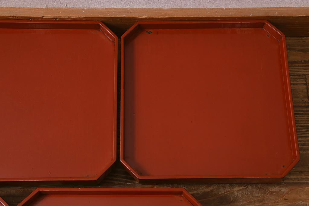 アンティーク雑貨 明治期 共箱 根来塗お膳5客セット(木製漆器、和食器)(R-042191)