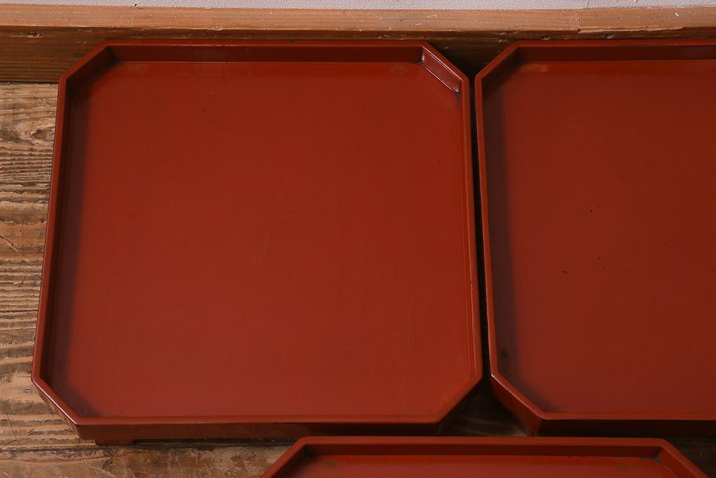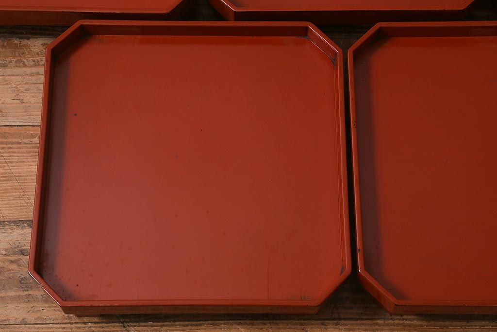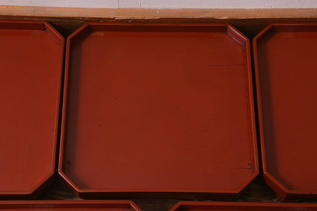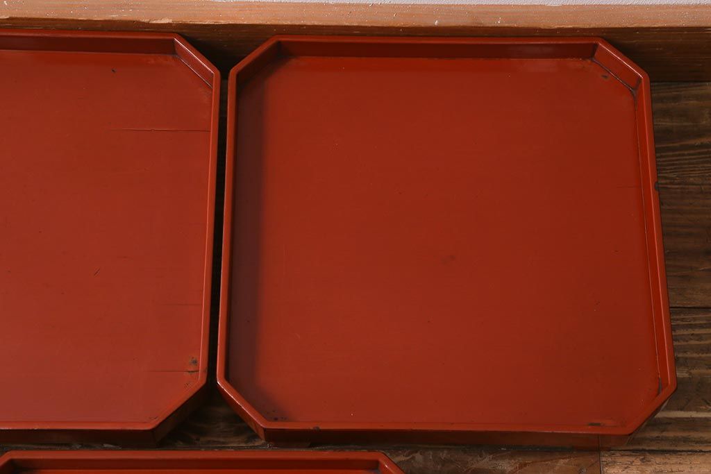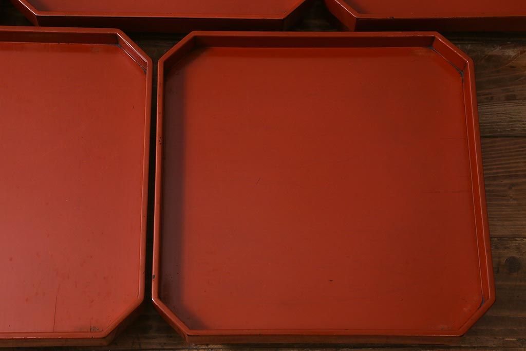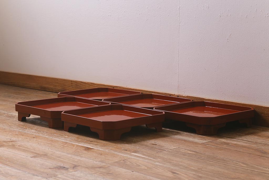 アンティーク雑貨 明治期 共箱 根来塗お膳5客セット(木製漆器、和食器)(R-042192)