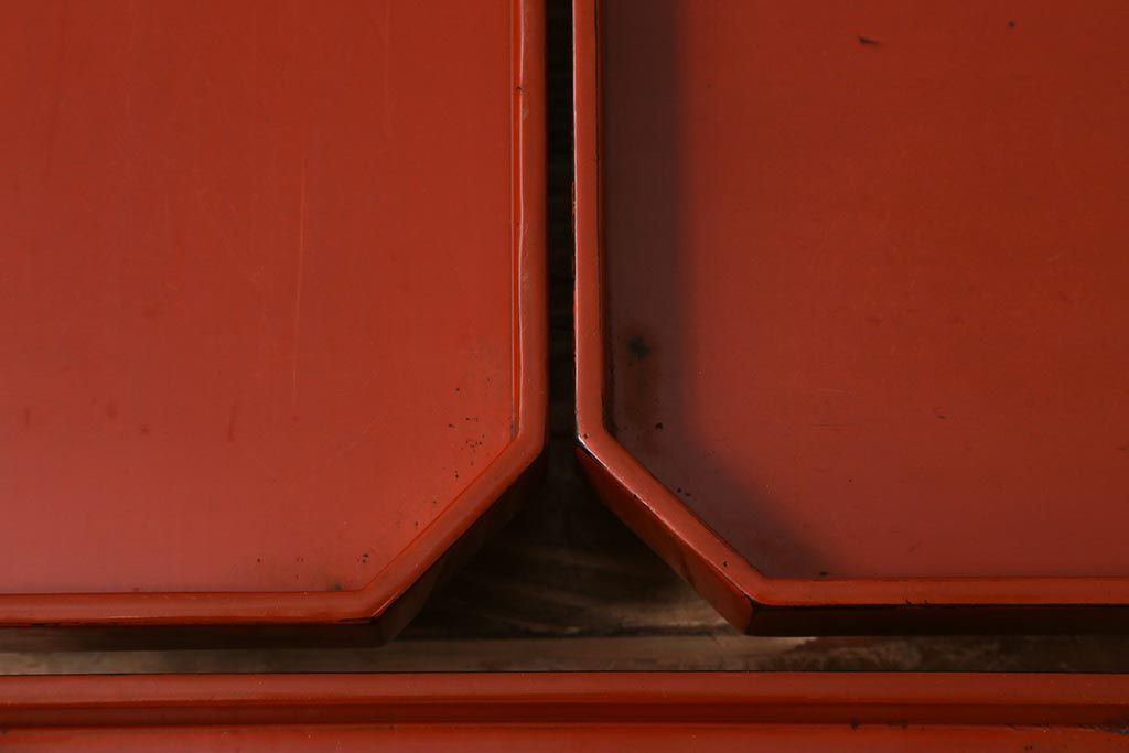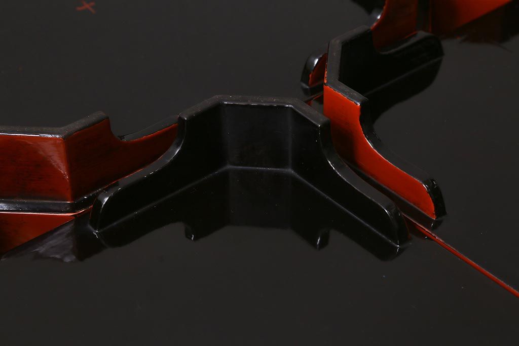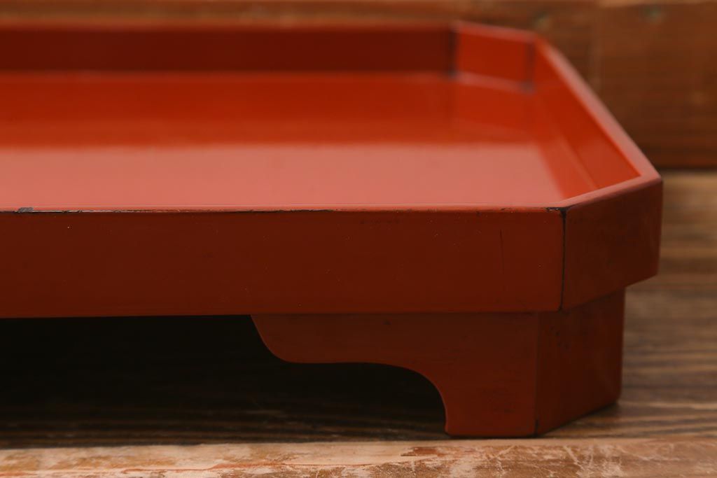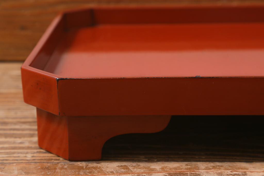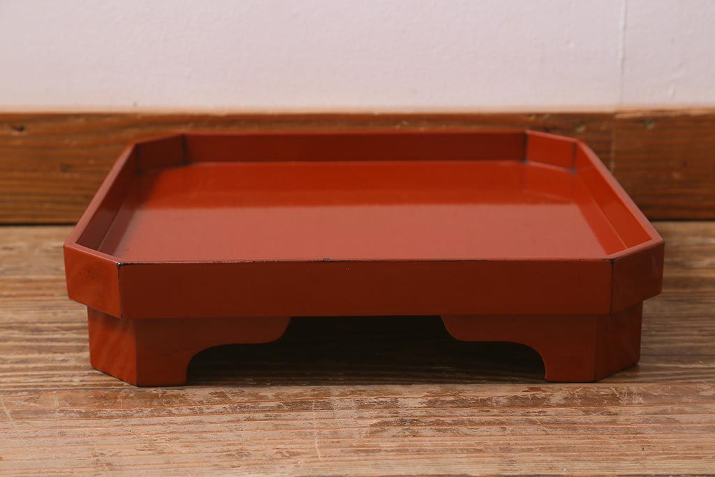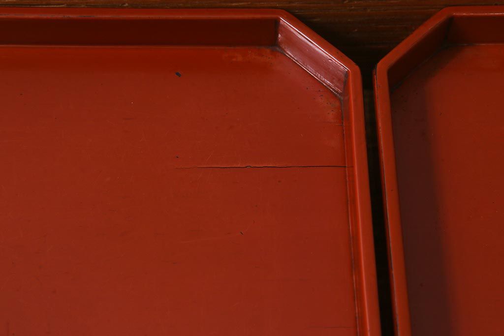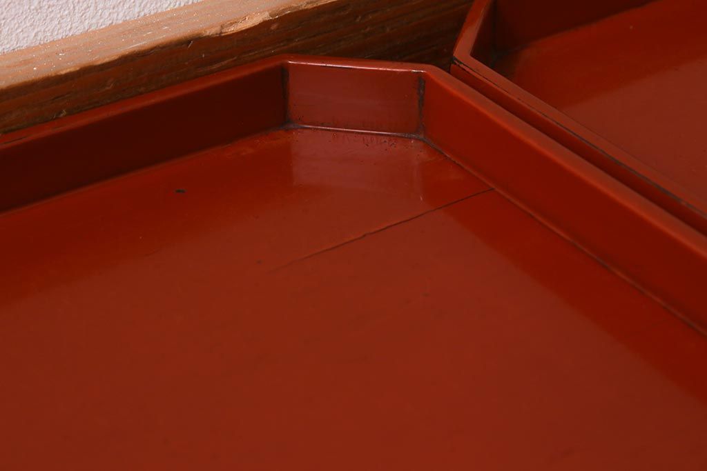 アンティーク雑貨 明治期 共箱 根来塗お膳5客セット(木製漆器、和食器)(R-042192)