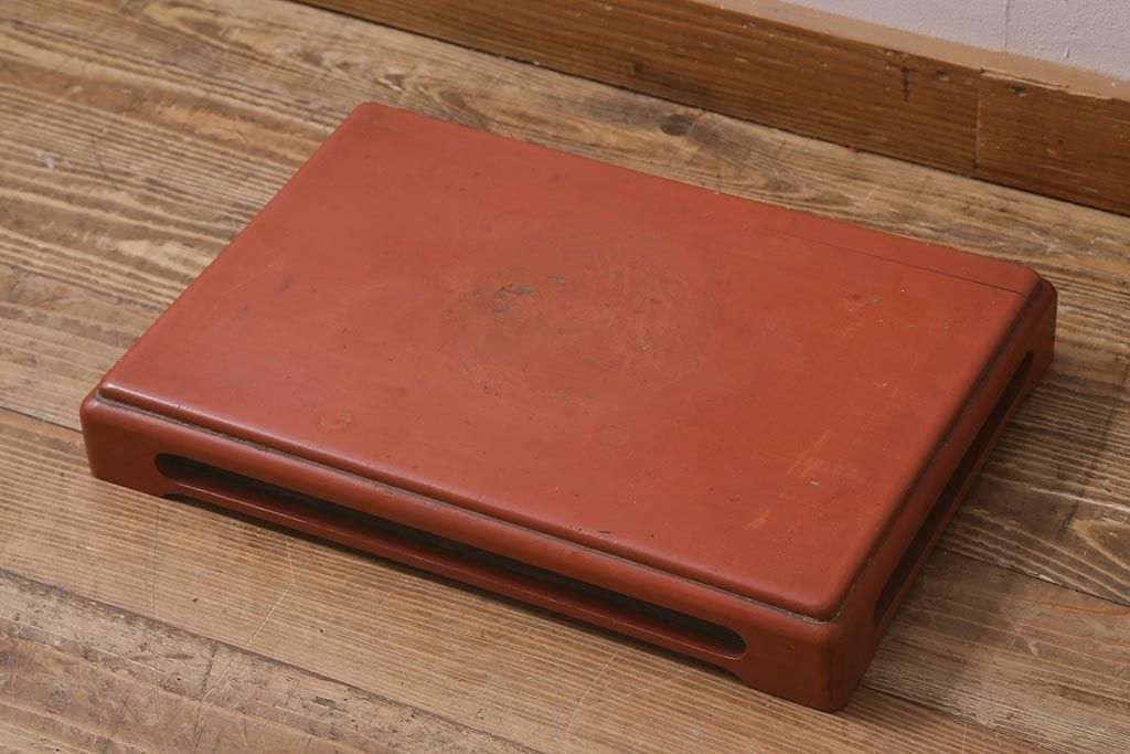 仏教美術 江戸〜明治 古い根来塗花台(飾り台、平卓、仏具)(R-042190)