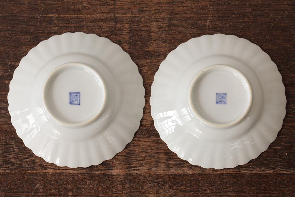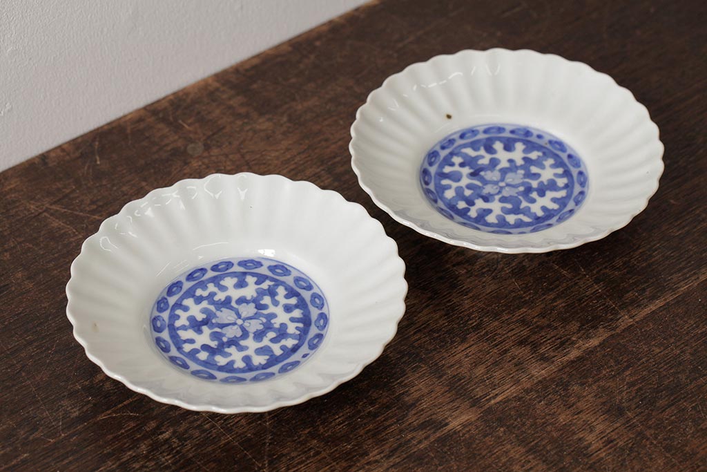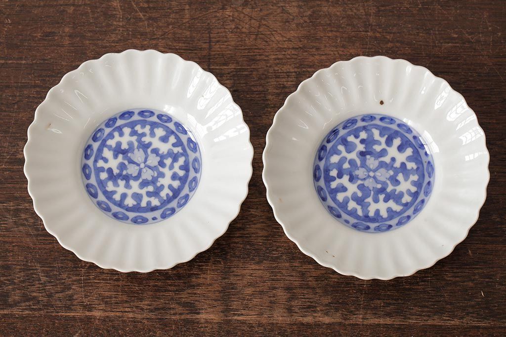 ラフジュ工房> 和食器・茶道具> 皿 > 江戸期 古伊万里 白磁染付輪花小皿2枚セット(小鉢、和食器)(R-042311)
