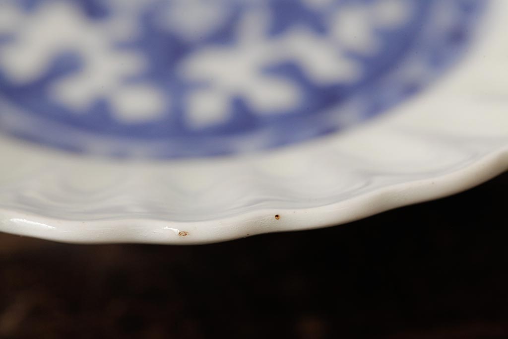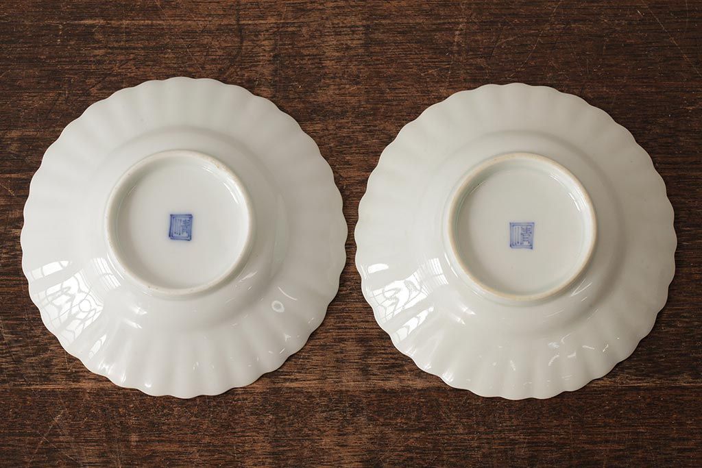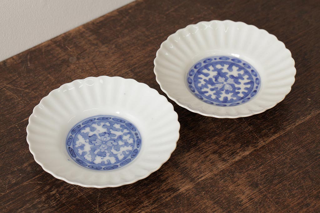 ラフジュ工房> 和食器・茶道具> 皿 > 江戸期 古伊万里 白磁染付輪花小皿2枚セット(小鉢、和食器)(R-042312)