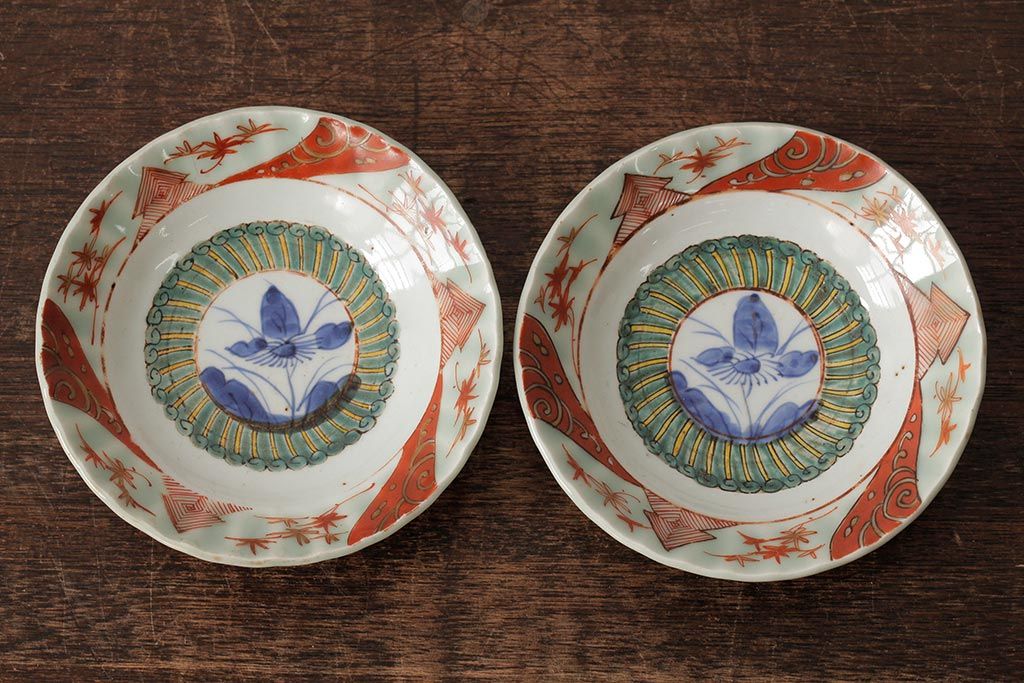 ラフジュ工房> 和食器・茶道具 > 江戸期 古伊万里 色絵染付小皿2枚セット(小鉢、和食器)(R-042315)