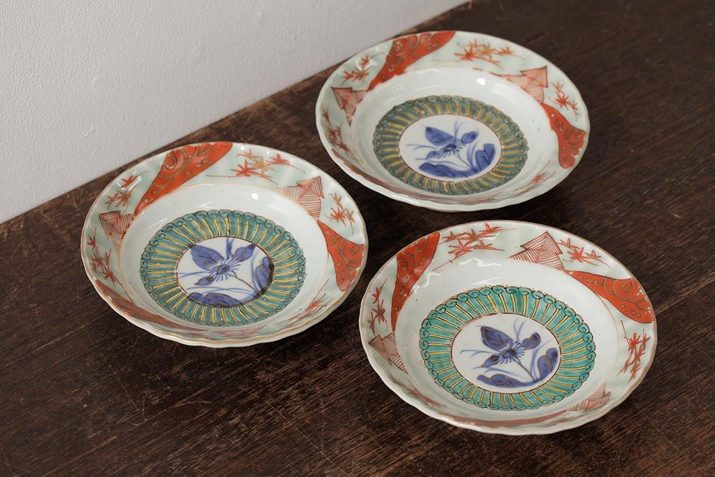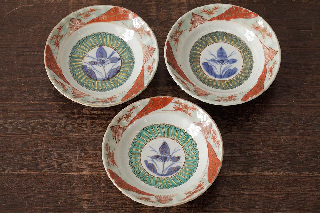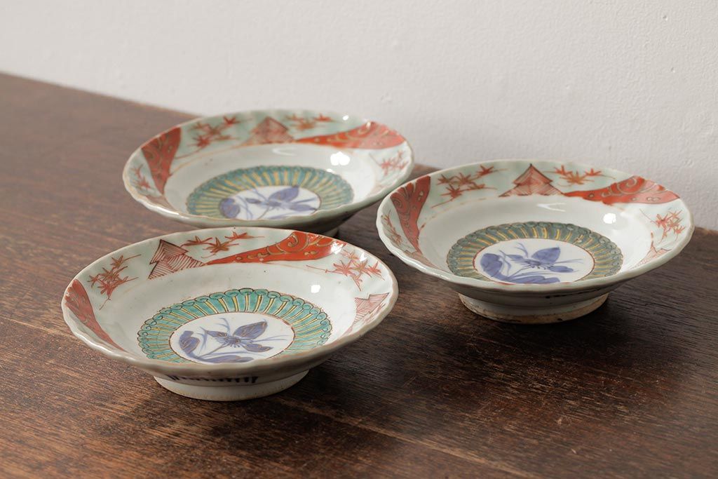 ラフジュ工房> 和食器・茶道具 > 江戸期 古伊万里 色絵染付小皿3枚セット(小鉢、和食器)(R-042316)