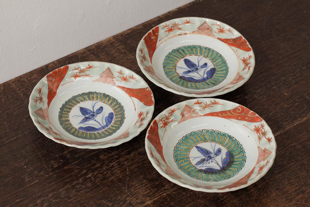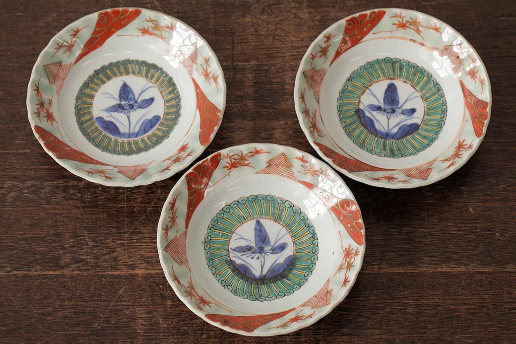 ラフジュ工房> 和食器・茶道具 > 江戸期 古伊万里 色絵染付小皿3枚セット(小鉢、和食器)(R-042317)