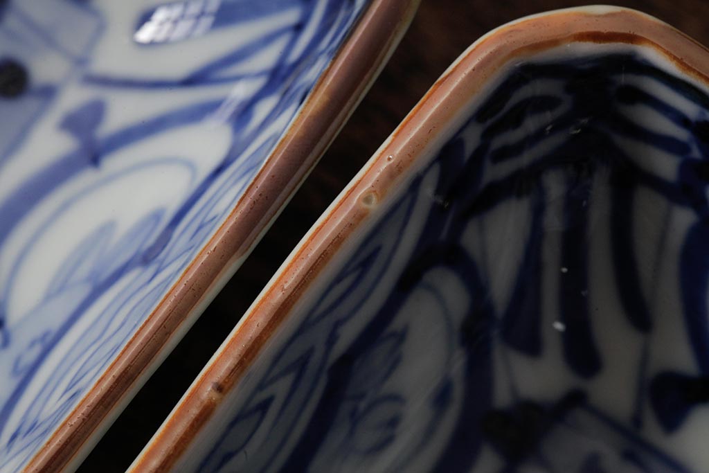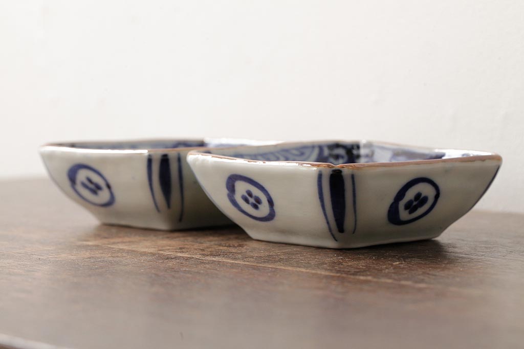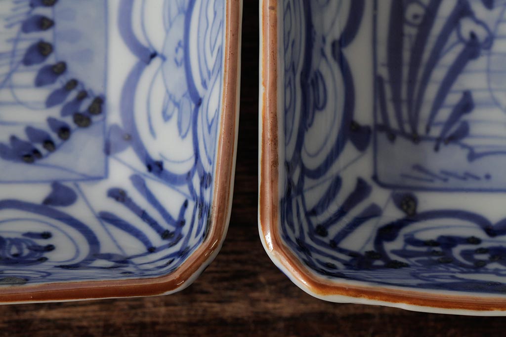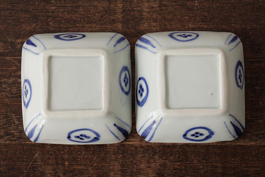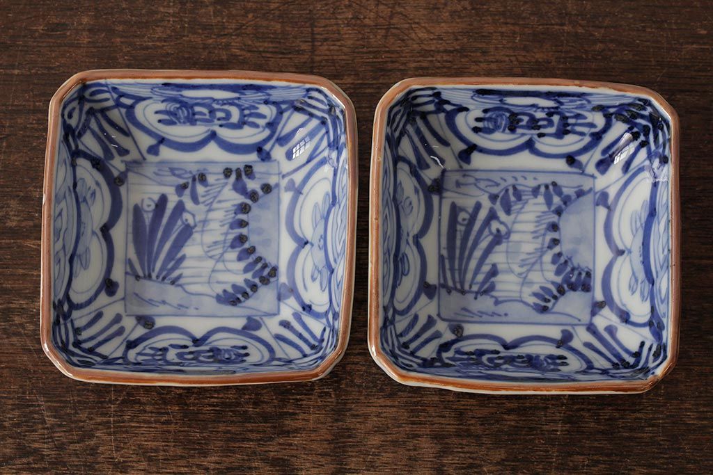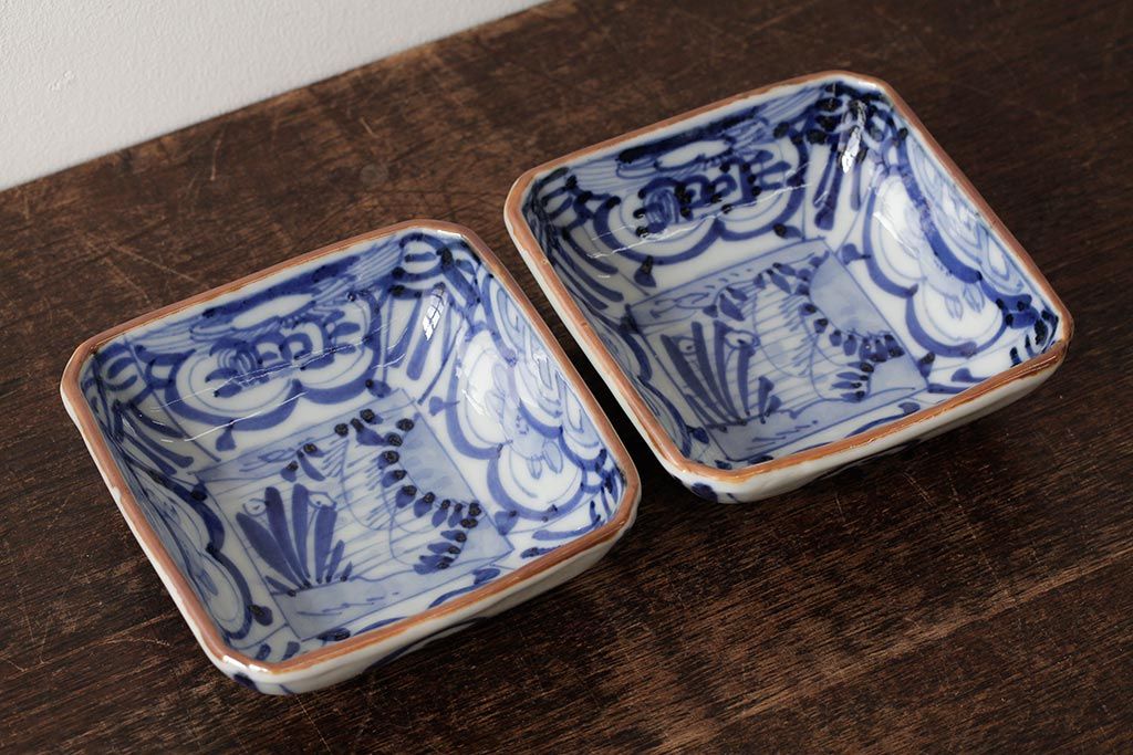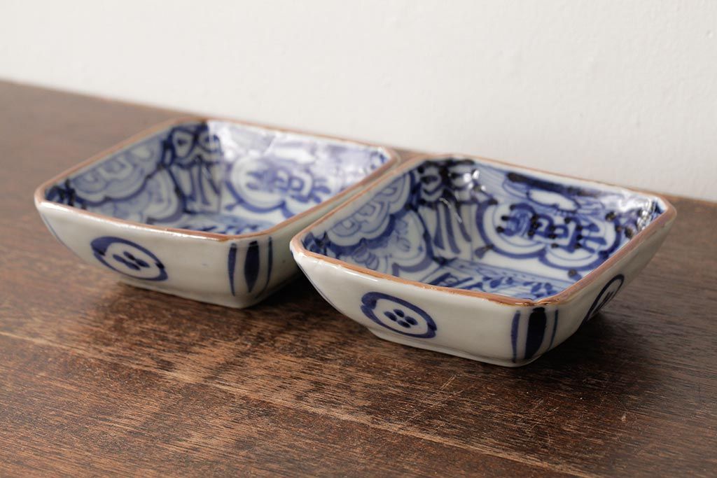 ラフジュ工房> 和食器・茶道具 > 幕末明治期 伊万里焼 染付角皿2枚セット(向付、小鉢、和食器)(R-042319)