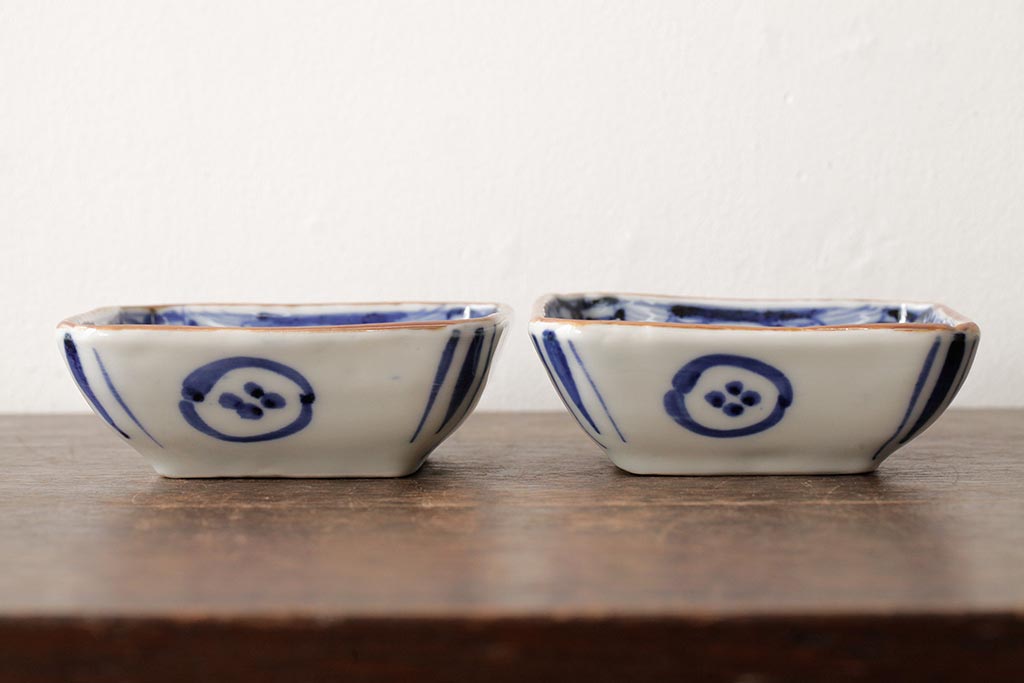 ラフジュ工房> 和食器・茶道具> 鉢 > 幕末明治期 伊万里焼 染付角皿2枚セット(向付、小鉢、和食器)(R-042319)