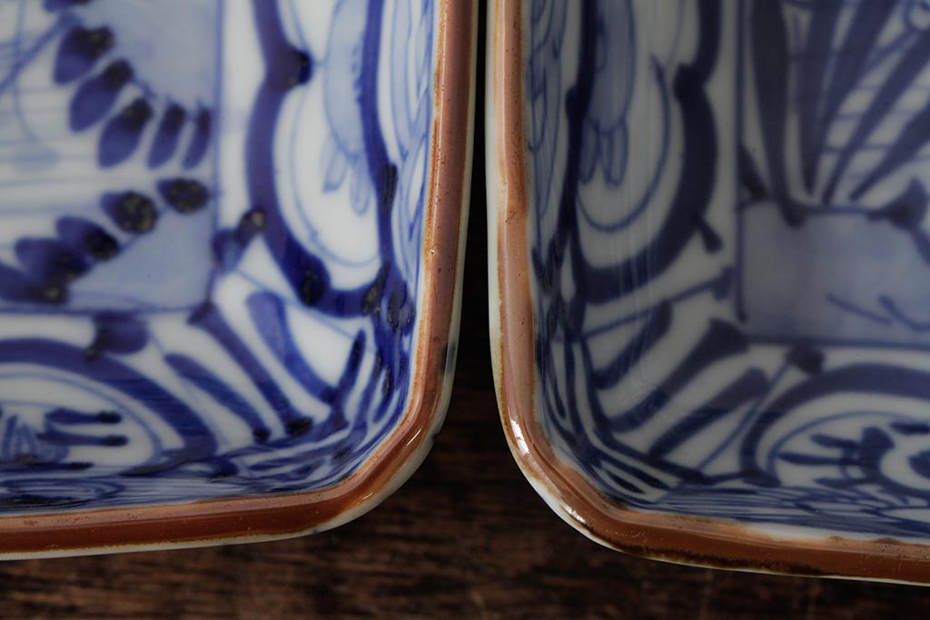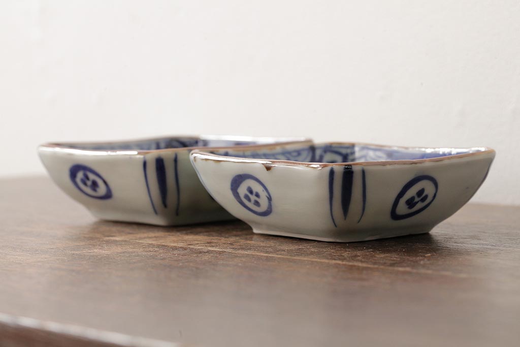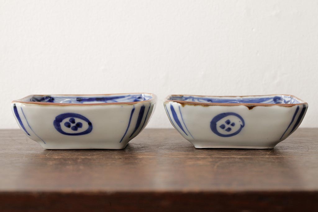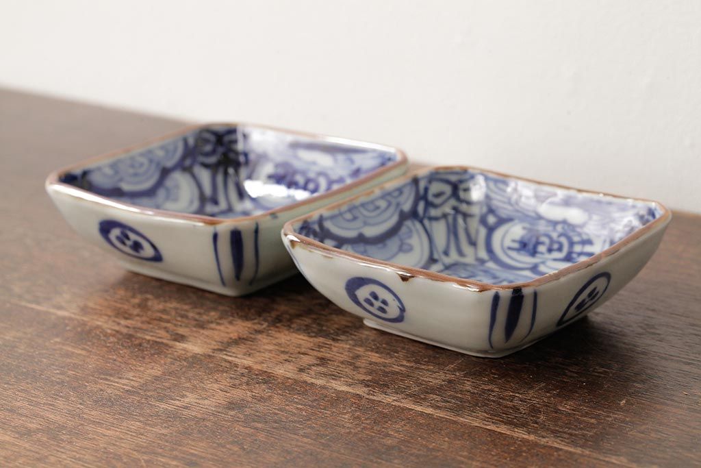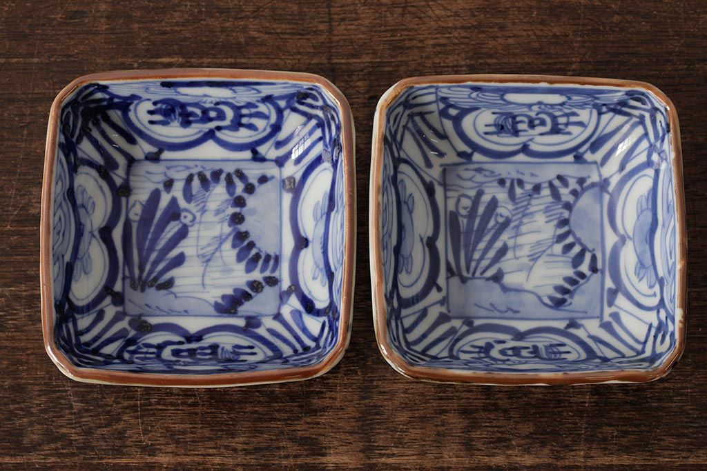 ラフジュ工房> 和食器・茶道具 > 幕末明治期 伊万里焼 染付角皿2枚セット(向付、小鉢、和食器)(R-042320)