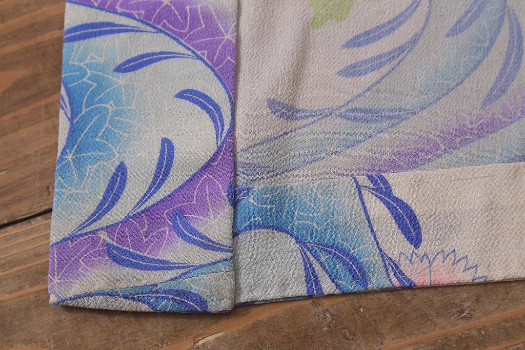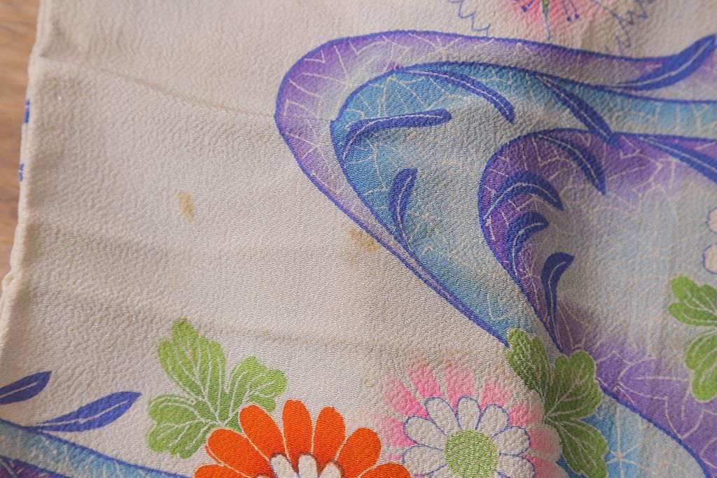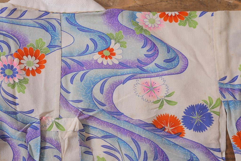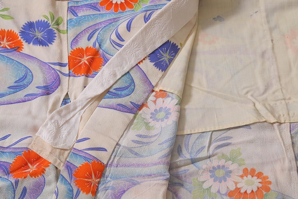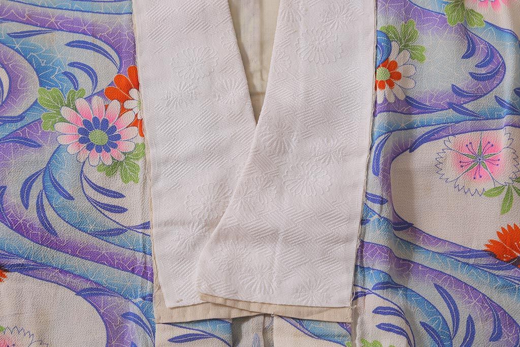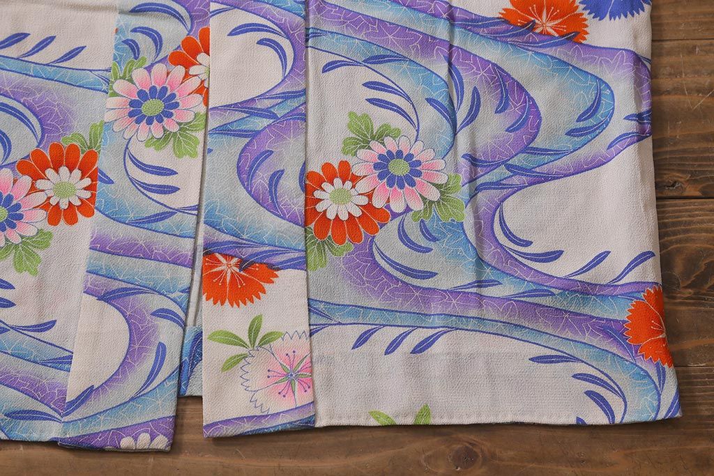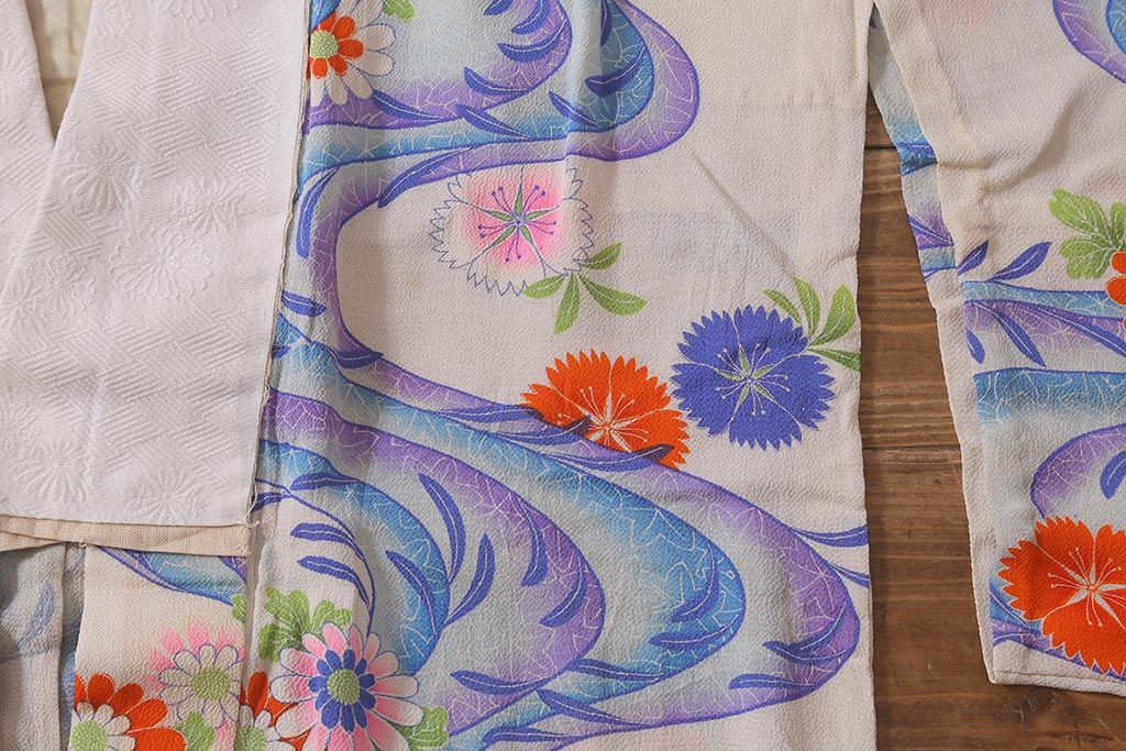 アンティーク着物 大正昭和初期 川に花模様 縮緬襦袢(ちりめん、古布正絹)(R-042195)