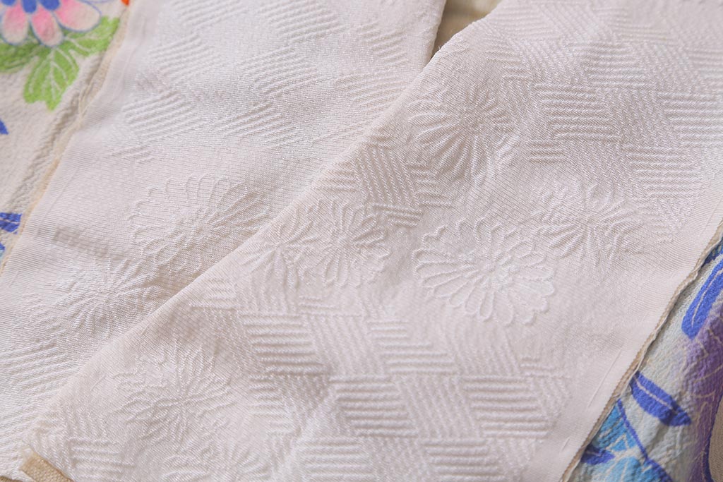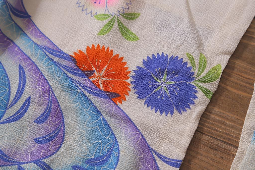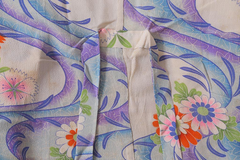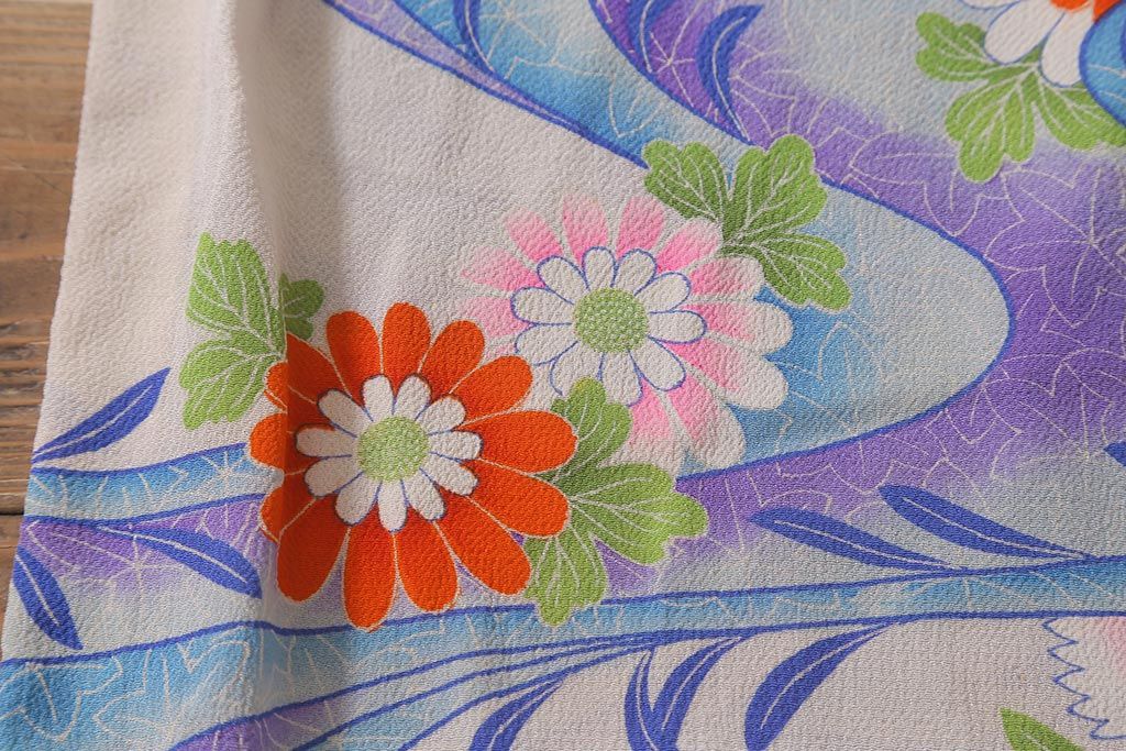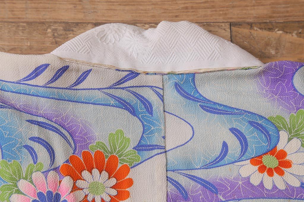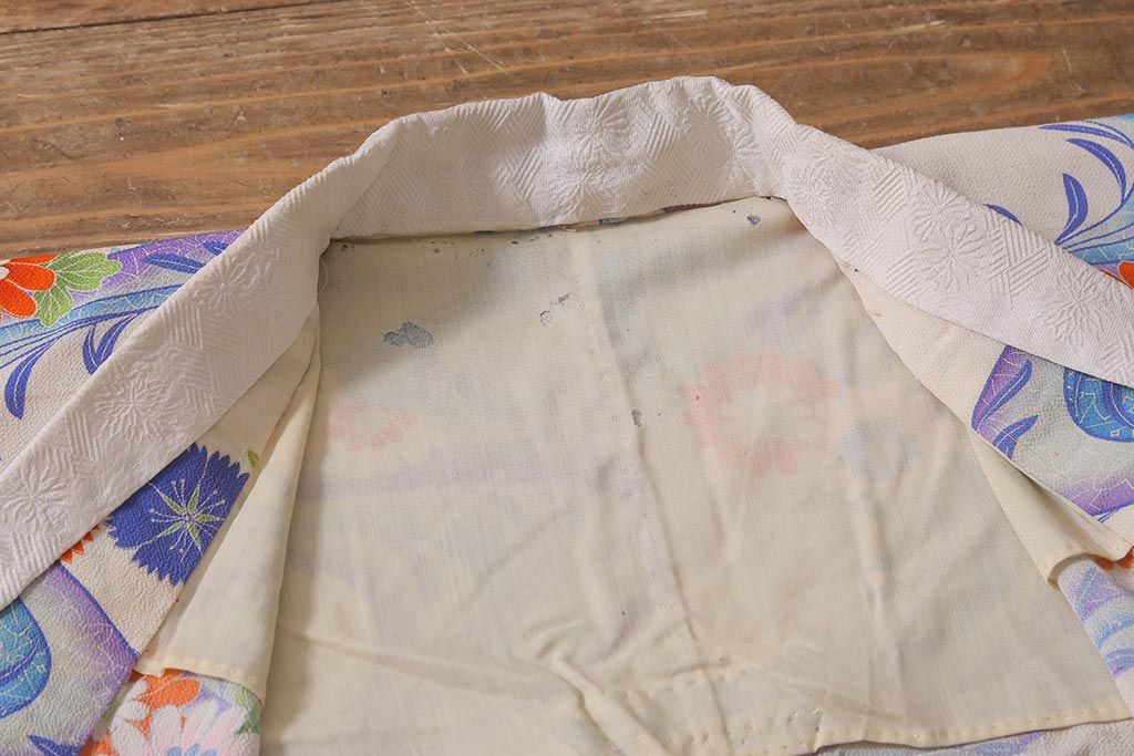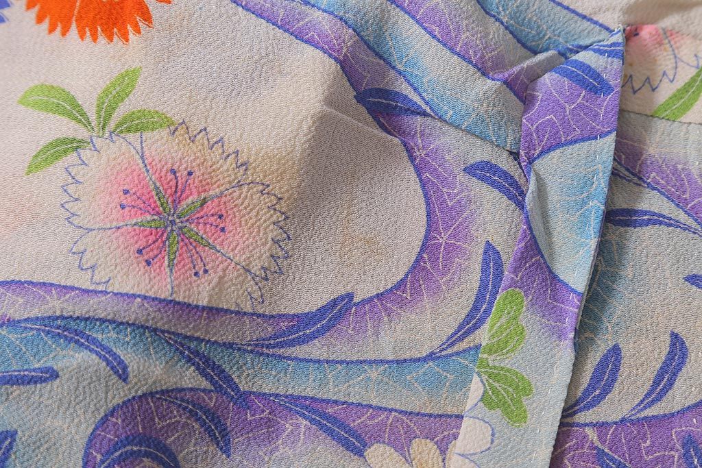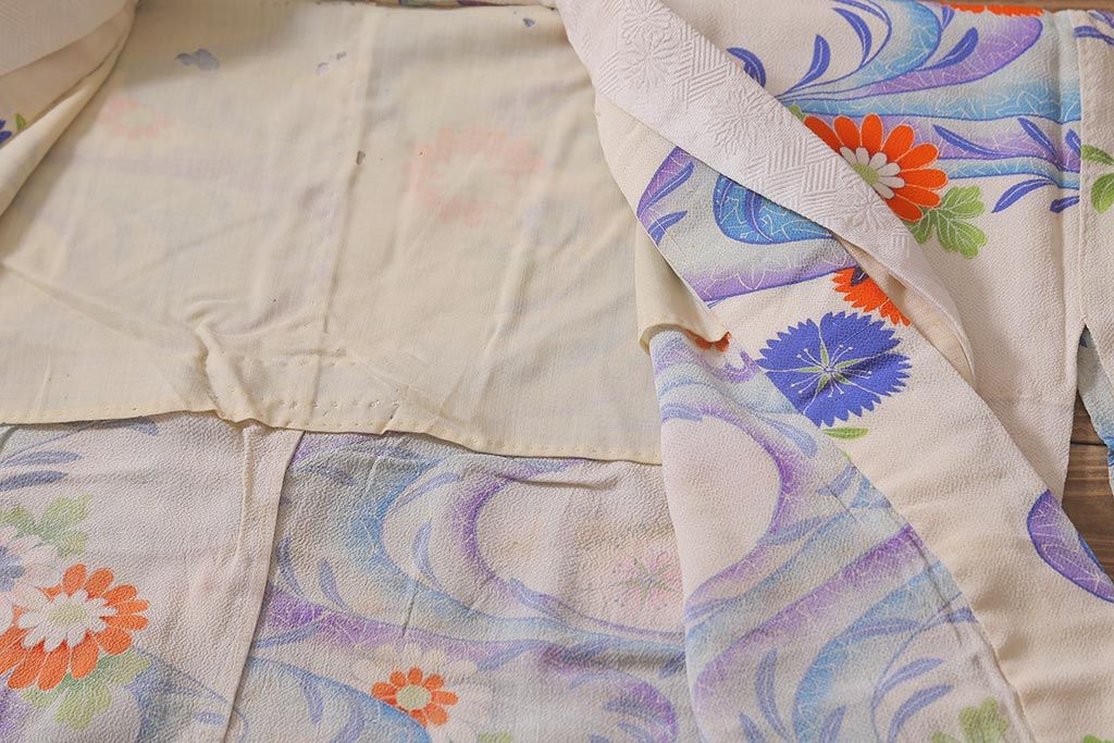 アンティーク着物 大正昭和初期 川に花模様 縮緬襦袢(ちりめん、古布正絹)(R-042195)