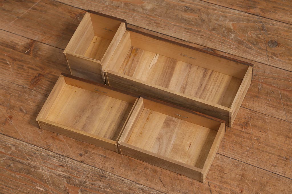 引き出し前面は桑材、その他はタモ材でつくられ、