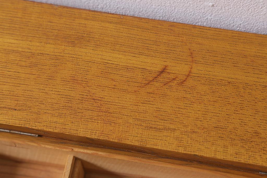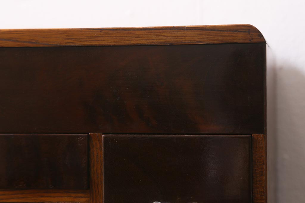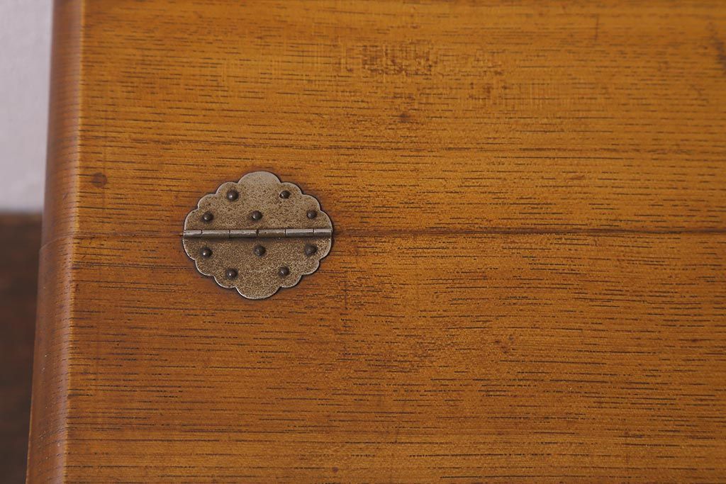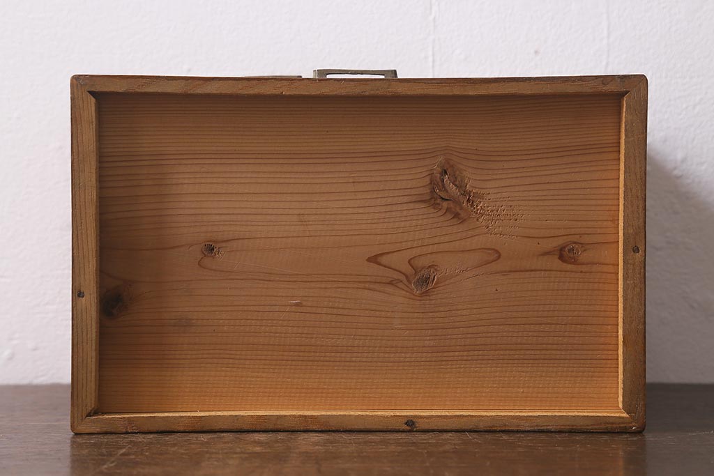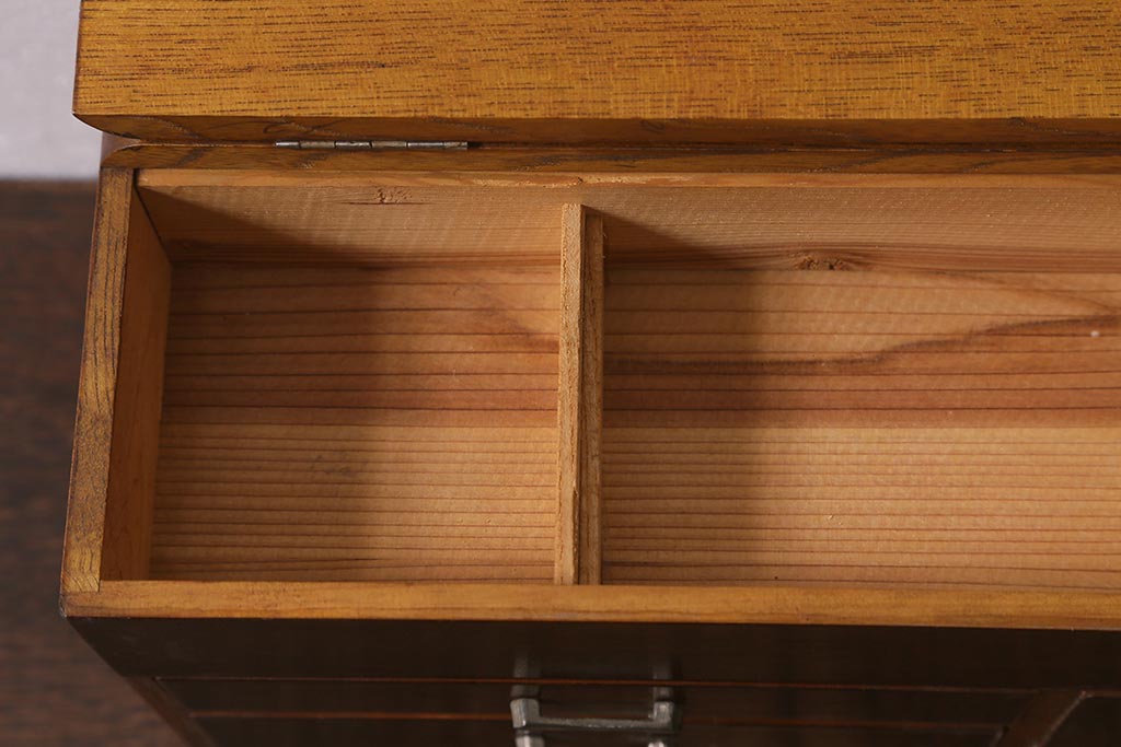 雑貨 > アンティーク雑貨 和製アンティーク 前面桑材 昭和中期 バイカラーがお洒落な上蓋式裁縫箱(ソーイングボックス、針箱、小引き出し、小物収納)(R-042559)