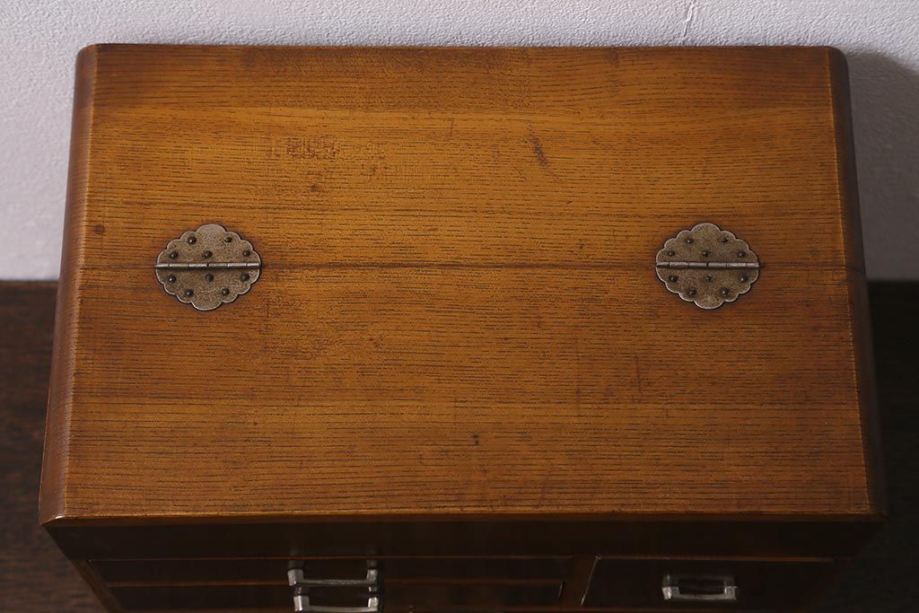 アンティーク雑貨 和製アンティーク 前面桑材 昭和中期 バイカラーがお洒落な上蓋式裁縫箱(ソーイングボックス、針箱、小引き出し、小物収納)(R-042559)