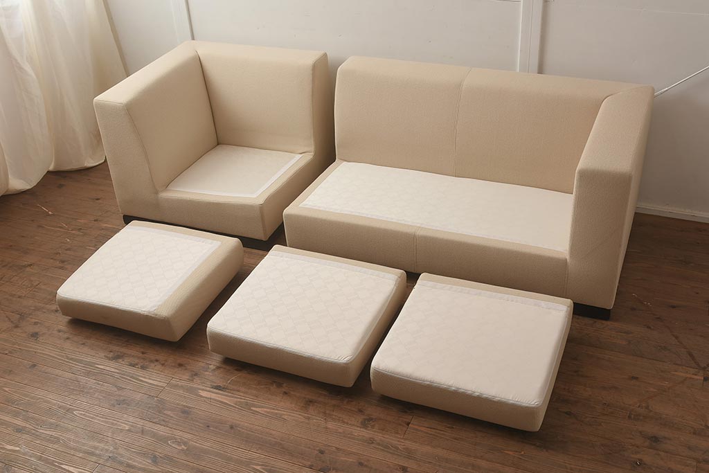 ソファ> 1人掛けソファ > 在庫未使用品 IDC大塚家具 WITTMANN(ヴィットマン) カミン#ALLEGRA布NA 3人掛けソファ クッション付(トリプル、ラブ、シングル、1人掛け、2人掛け、コーナー)(定価約90万円)(R-041881)