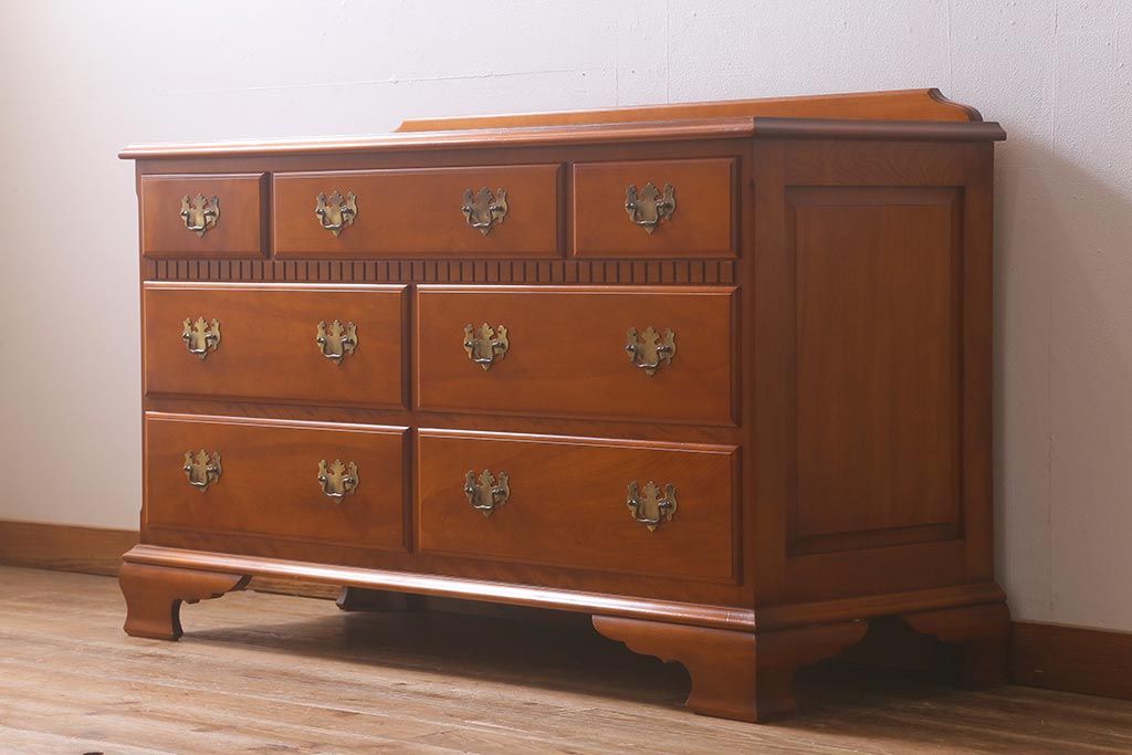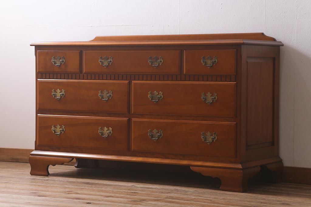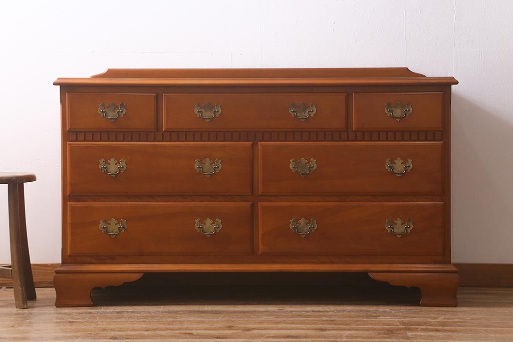 中古 横浜ダニエル(daniel) アーリーアメリカン A-104横長整理タンス エレガントな佇まいが魅力のチェスト(定価約50万円)(引き出し、サイドボード)(R-042520)