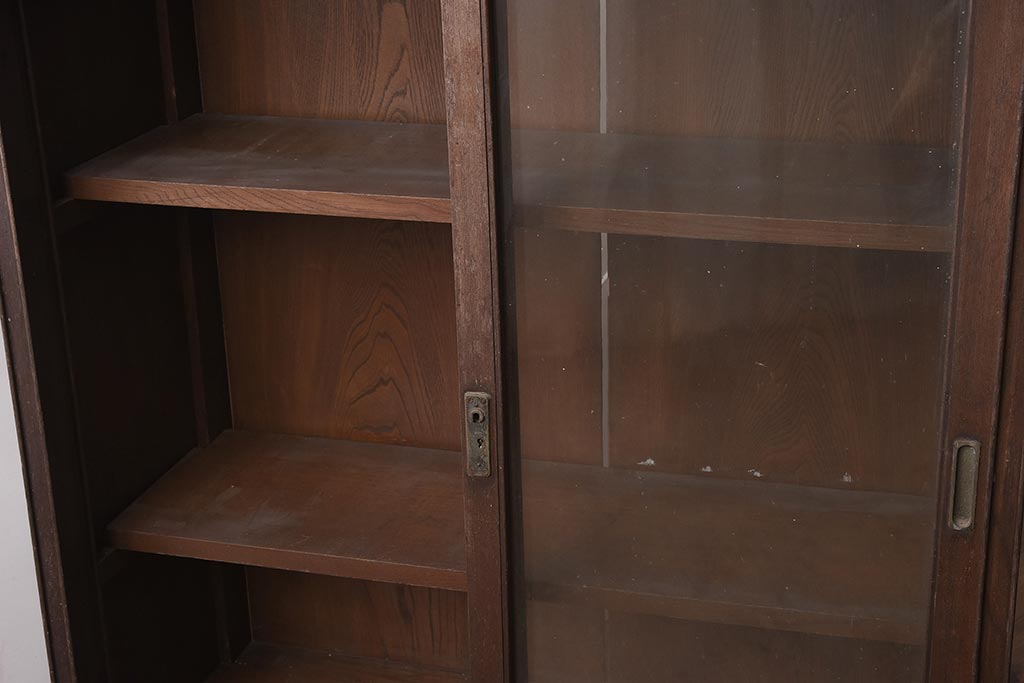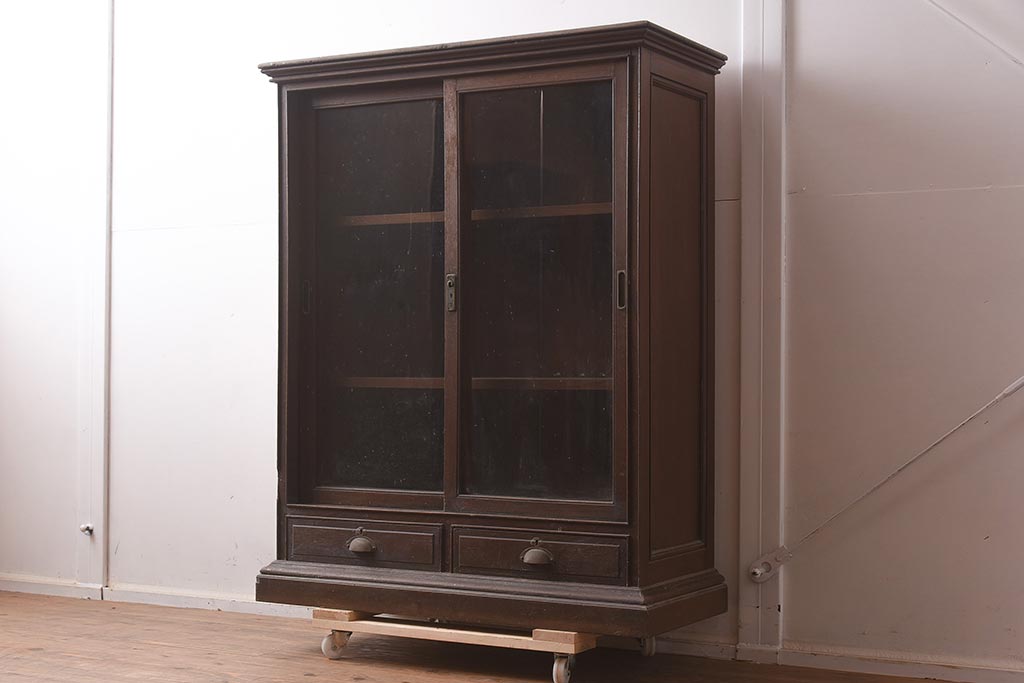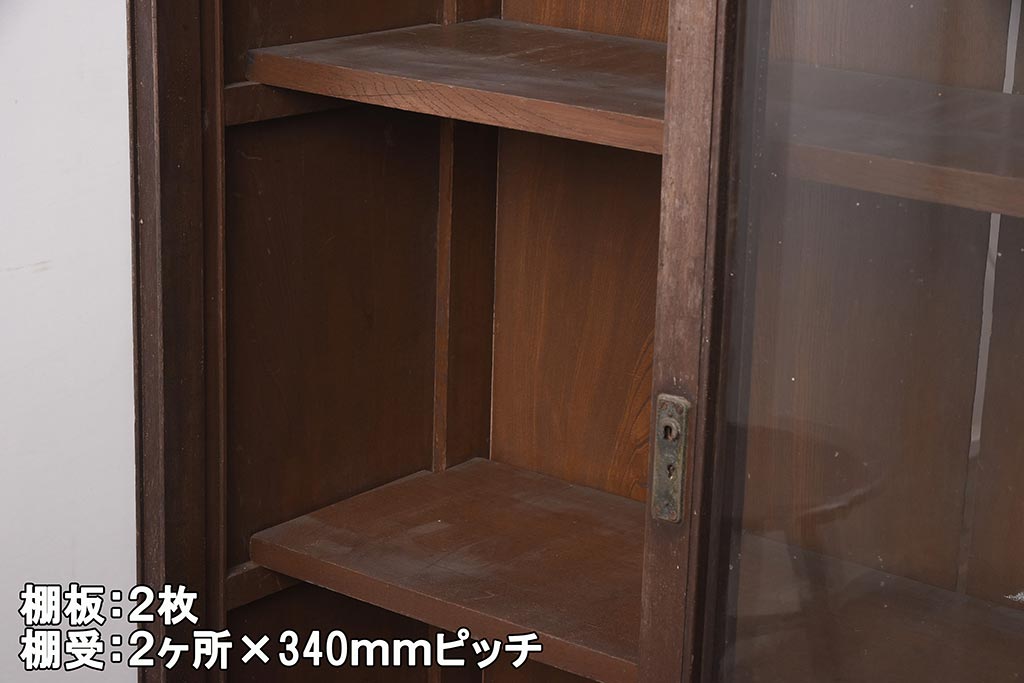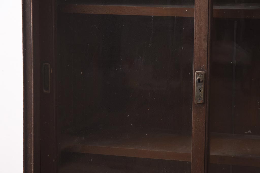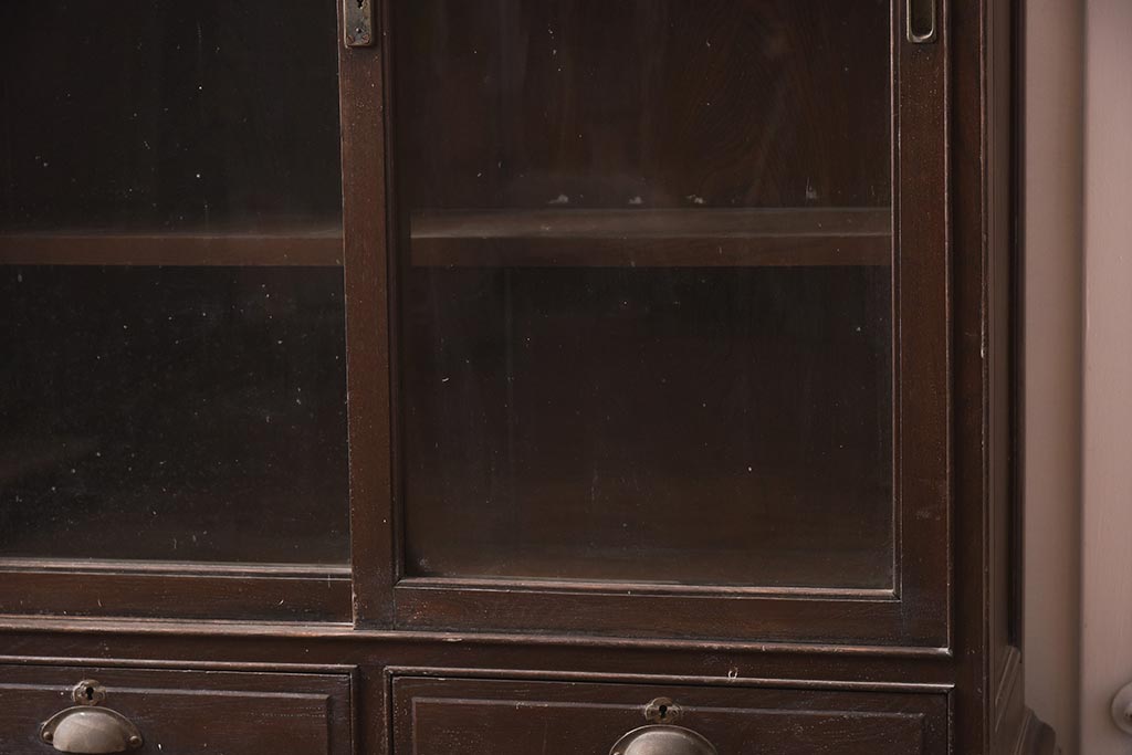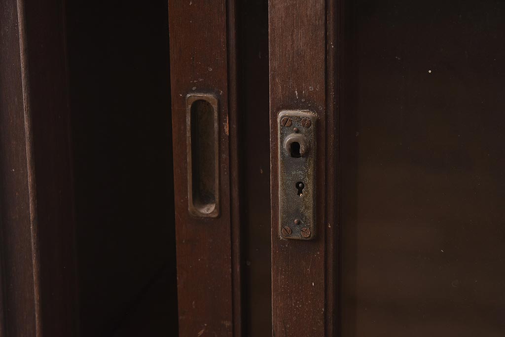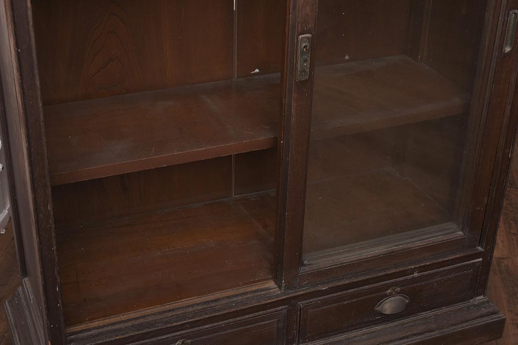 アンティーク家具 和製アンティーク 栓材 大正ロマン 和洋折衷デザインが魅力のガラス戸棚(収納棚、飾り棚、食器棚、キャビネット)(R-042575)