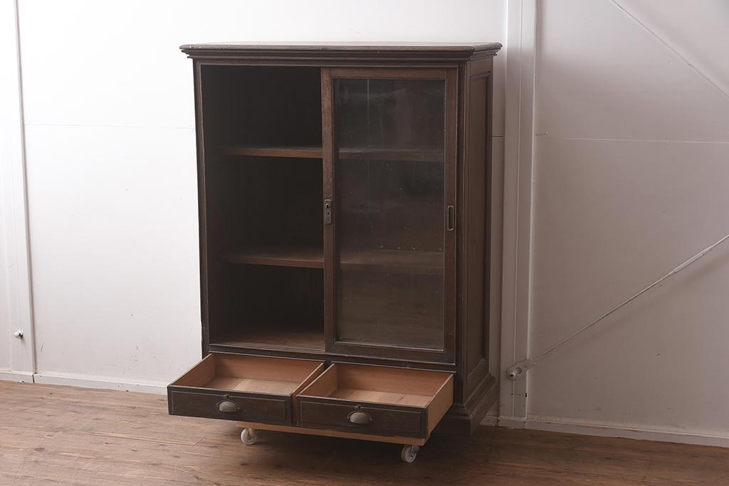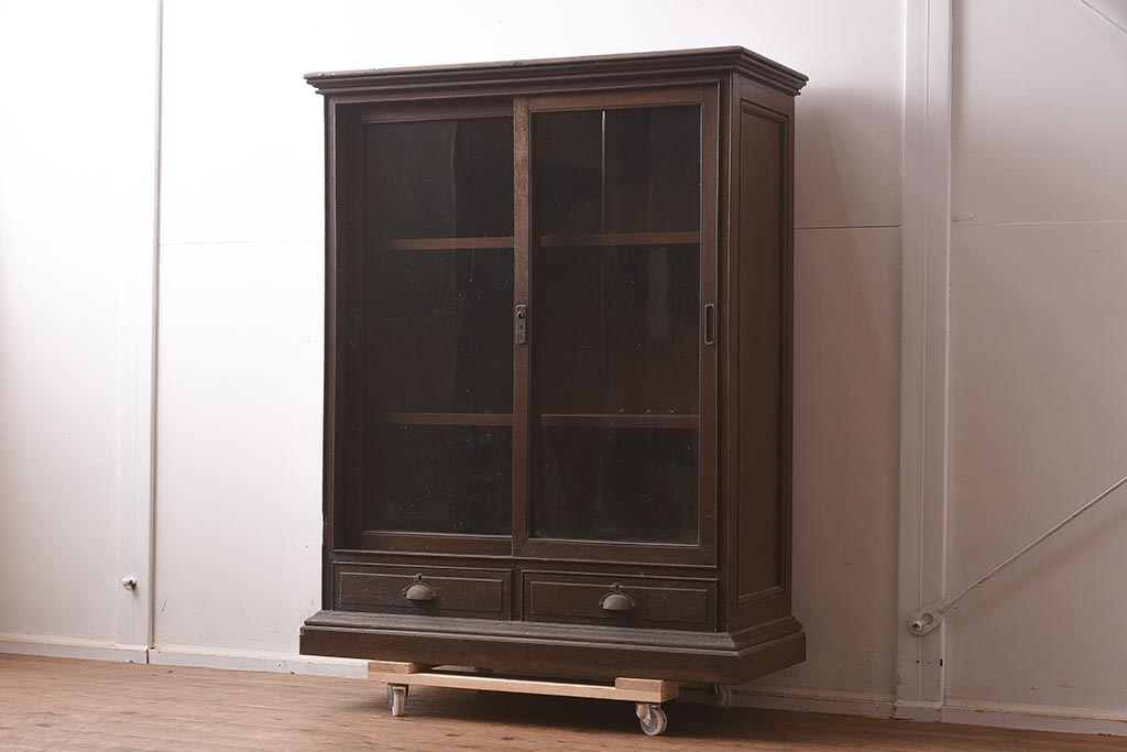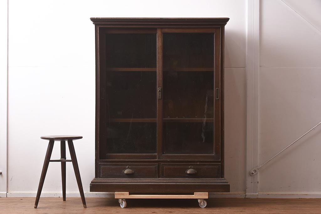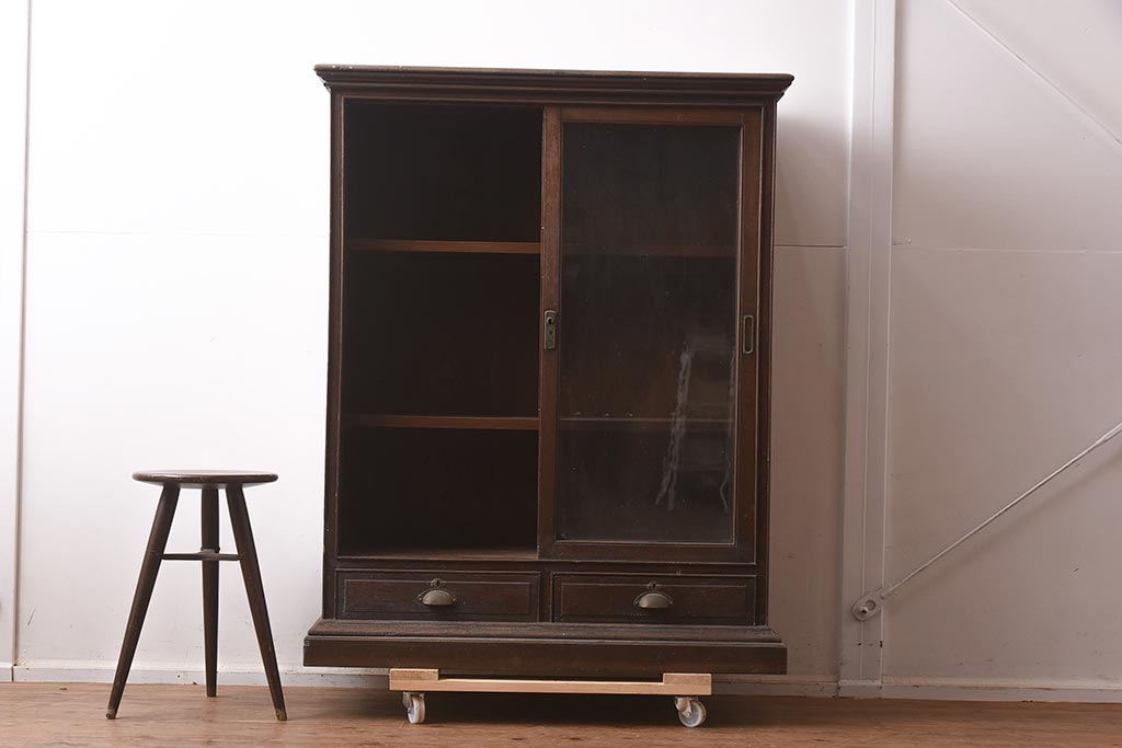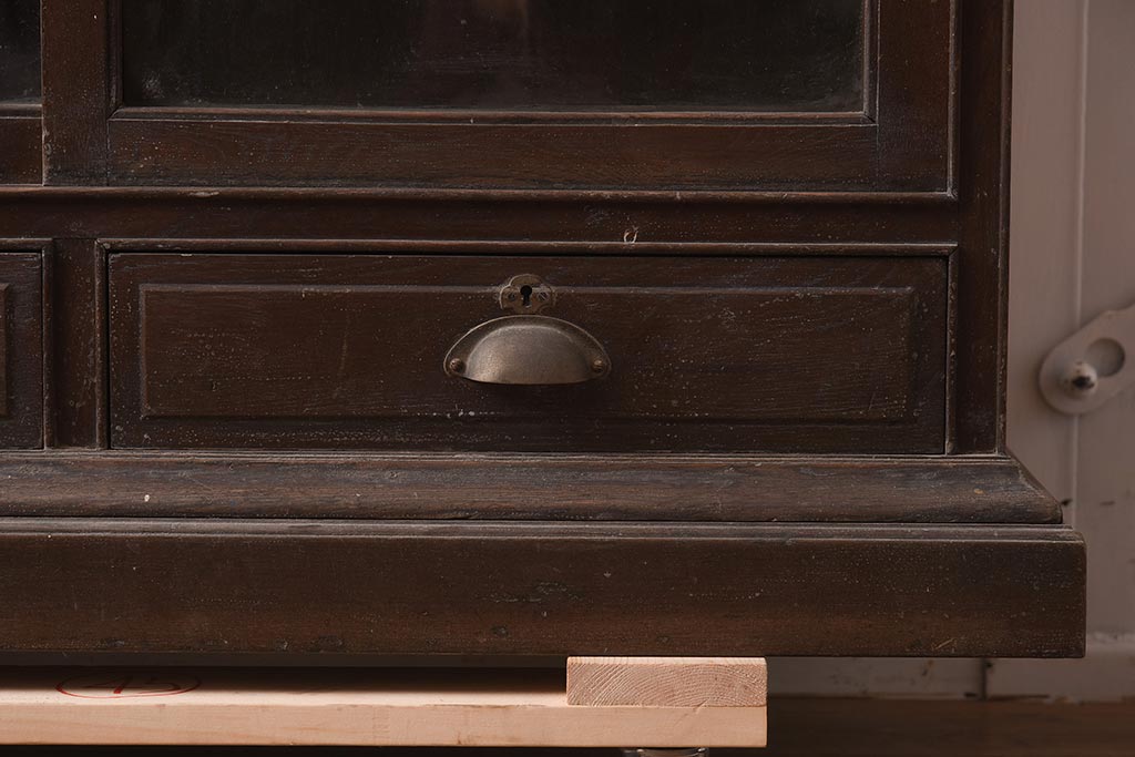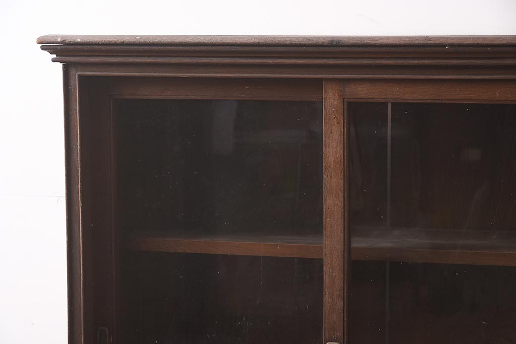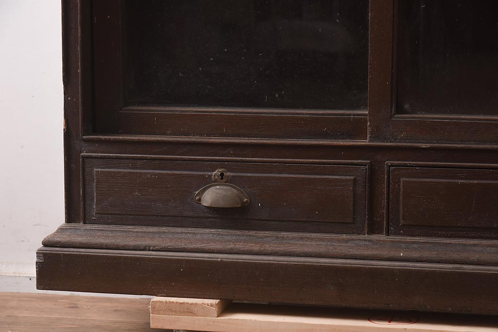 アンティーク家具 和製アンティーク 栓材 大正ロマン 和洋折衷デザインが魅力のガラス戸棚(収納棚、飾り棚、食器棚、キャビネット)(R-042575)