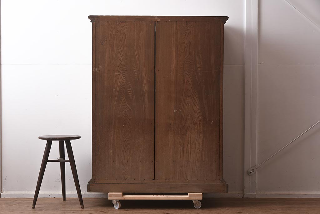 アンティーク家具 和製アンティーク 栓材 大正ロマン 和洋折衷デザインが魅力のガラス戸棚(収納棚、飾り棚、食器棚、キャビネット)(R-042575)です。