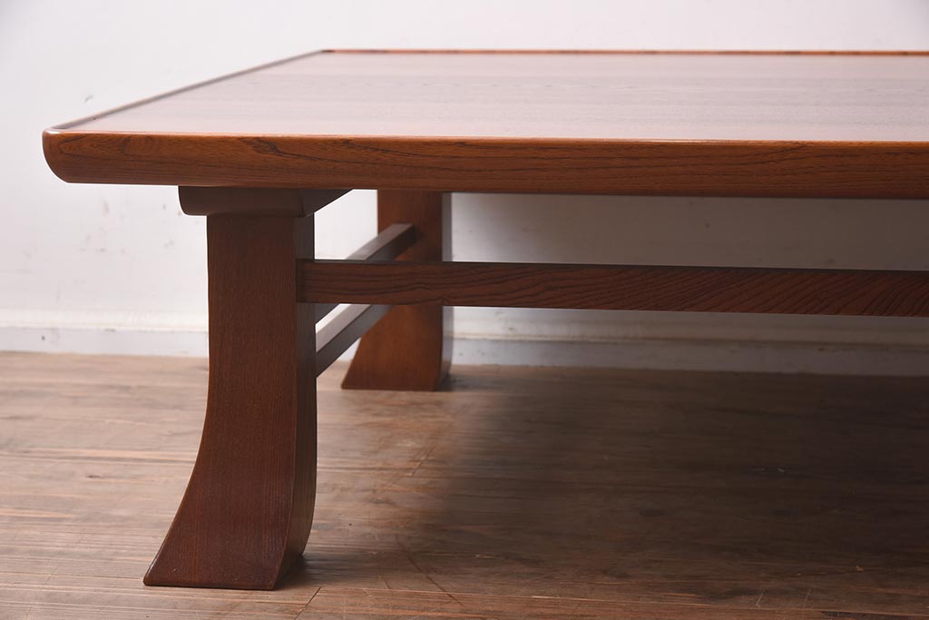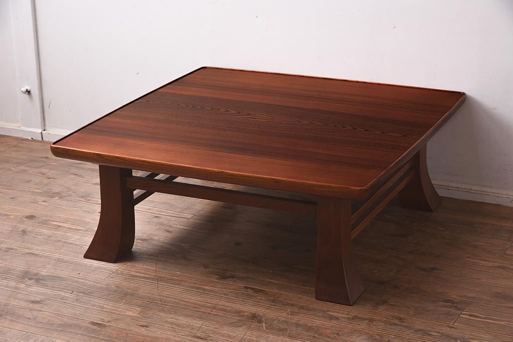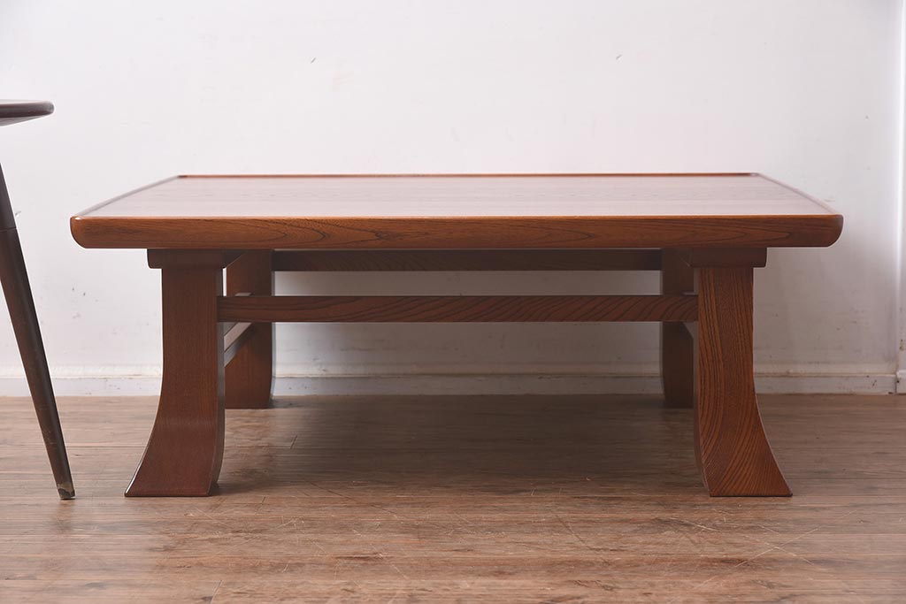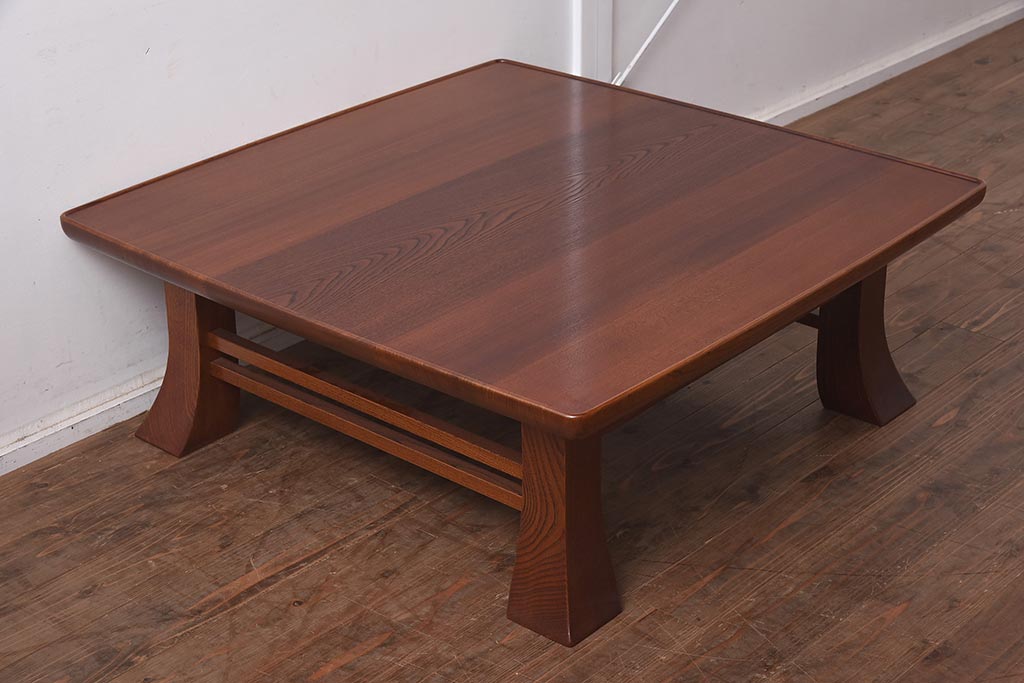テーブル> 座卓 > 在庫未使用品 IDC大塚家具 藤沢木工 江戸小紋 角けり 90 楡無垢材 座卓(ローテーブル)(定価約17万円)(R-041839)